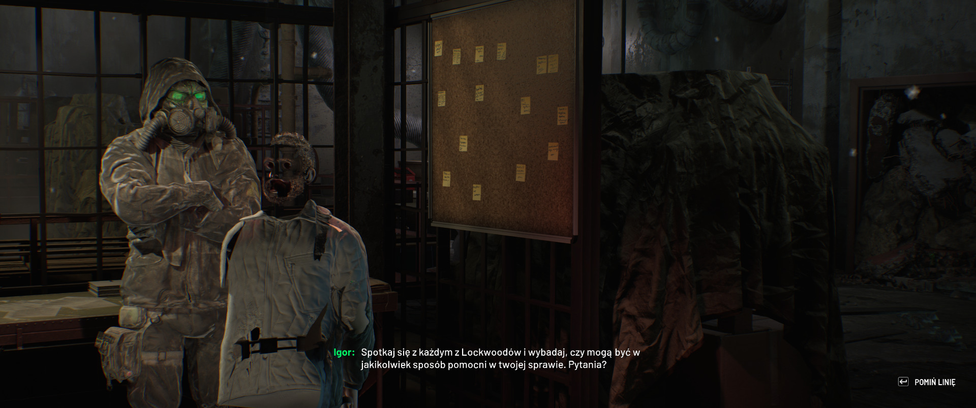Nie zrozumcie mnie źle, nie uważam tego za wadę. Bardzo Gothica cenię i sądzę, że ten przepis na historię i świat, mimo ponad dwudziestu lat na karku, dalej może zadziałać. Niestety, Chernobylite 2: Exclusion Zone nie radzi sobie z wykorzystaniem tego schematu. Świat przedstawiony wydaje się mieć potencjał na to, żeby nas zaciekawić, ale tutaj nigdy się to nie udaje. Dialogi same w sobie są po prostu kiepskie, a napisy przepełnione błędami. Ich odbiór uprzykrza też okropny maszynowy dubbing, od słuchania którego odechciewa się brać udział w jakiejkolwiek konwersacji.