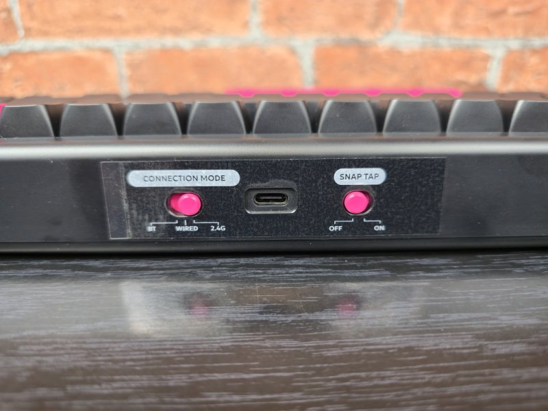 Na pewno muszę się jednak przyczepić do gumowej podkładki na środku klawiatury, która jest wybitnie słabo przyklejona. Odkleja się w zasadzie od nowości i co prawda raczej będzie przytwierdzona do klawiatury, jeżeli nie będziemy się starać jej oderwać, ale budzi pewną niepewność. Wątpliwy także jest wybór oznaczenia przełączników snap-tap oraz trybu połączenia z PC... naklejką.