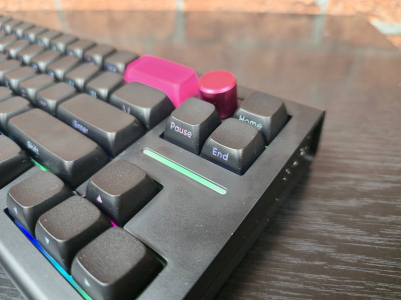 Jak pewnie już zauważyliście na zdjęciach, klawiatura wyposażona została w pokrętło do ustawienia poziomu głośności oraz trzy klawisze wokół niego. NK68 Pro przyszedł do mnie w konfiguracji z Page Up, Page Down oraz Pause, ale klawisze odpowiedzialne za szybkie przerzucanie stron w dokumencie, postanowiłem od razu zmienić na Home oraz End. Tych bowiem używam zdecydowanie więcej, co zresztą nie powinno dziwić.