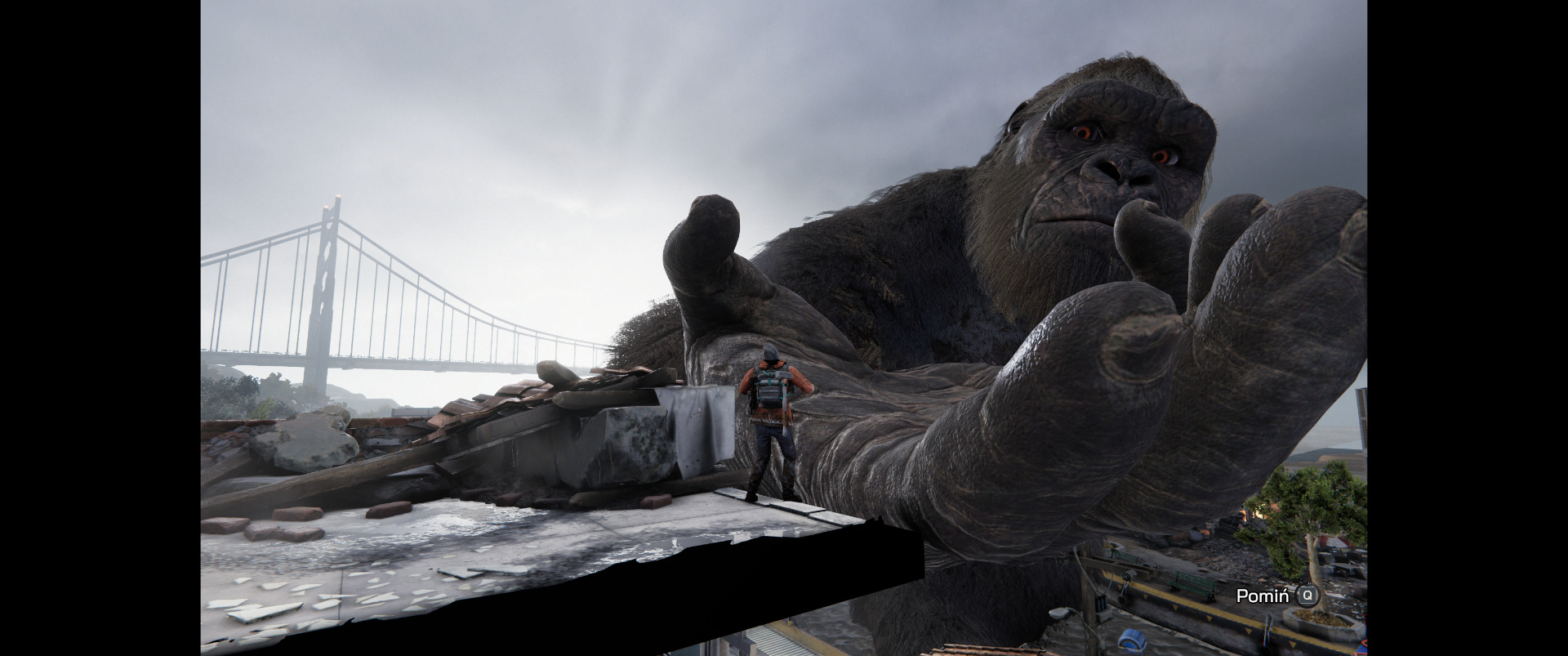 Jeżeli oglądaliście jakieś filmy z Monsterverse, to możecie kojarzyć ikoniczne ryki wielu potworów. Godzilla czy Kong na dużym ekranie budzą respekt. Niestety Pan Monke i reszta ferajny w growym wydaniu brzmią dziwnie płasko. Brak dudnienia czy basów, jakimi raczyli nas w filmach. Ludzie z kolei, których niestety obserwujemy znacznie częściej od majestatycznych tytanów, brzmią po prostu okropnie. Są słabo zagrani, do tego ich kwestie nagrane są jakby na kiepskiej jakości mikrofonach.