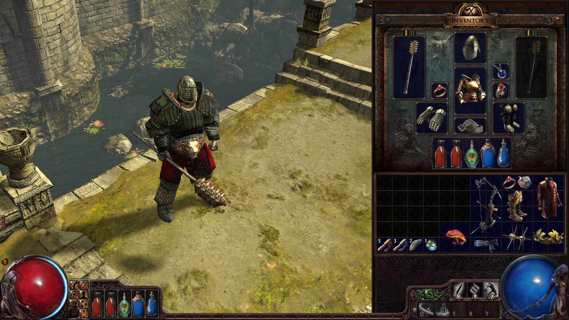Gra fabularnie dzieli się na trzy akty, w których przyjdzie nam zmierzyć się z zadaniami przekazywanymi przez NPC`ków znajdujących się w miastach. Zadania głównie polegają na zgładzeniu jakiś bestii, lub rozwiązaniu jakiejś zagadki. Po rozwiązaniu zadania możemy liczyć na zapłatę, ale nie w złocie. Za rozwiązane zadania otrzymujemy przedmioty takie jak rzadkie bronie, zbroje, fiolki oraz sill book`i. Na końcu każdego z aktu przyjdzie nam zmierzyć się z ogromnymi bossami, którzy dadzą nam popalić. Po przejściu wszystkich trzech aktów odblokowujemy wyższy poziom trudności, tak jak to ma miejsce w Diablo. Gra oferuje trzy poziomy trudności : normal, cruel oraz merciless, a jeśli uda się wam przejść merciless, to nie myślcie, że zabawa się kończy. Na ostatnim poziomie trudności będziemy mieli możliwość uzyskania specjalnych map, które poprowadzą nas w nowe miejsca gdzie dalej będziemy mogli w spokoju kontynuować zabawę.