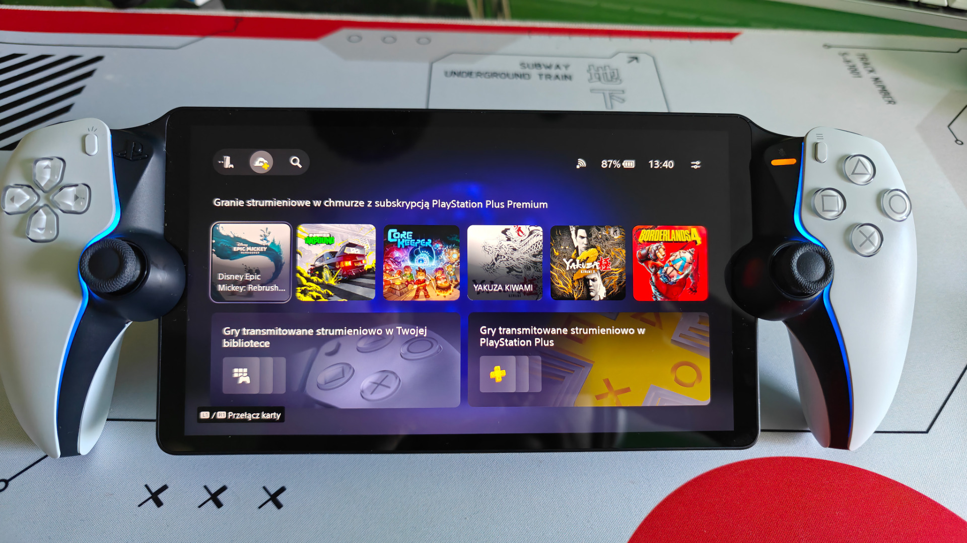 Tutaj przyznam, że miałem spore obawy co do tego, jak ten streaming zdalny będzie działał. W końcu przecież urządzenie będzie łączyć się z serwerem gdzieś tam w Polsce, a nie z konsolą, która stoi kilka metrów ode mnie. Obawy okazały się jednak nieuzasadnione. Zdalny streaming bez konsoli działał bowiem praktycznie perfekcyjnie. Opóźnienie oczywiście nieco wzrosło, ale nadal z przyjemnością dało się grać nawet w tytuły wymagające szybkiej reakcji jak wspomniana już Yakuza, czy też Ghost of Yotei.