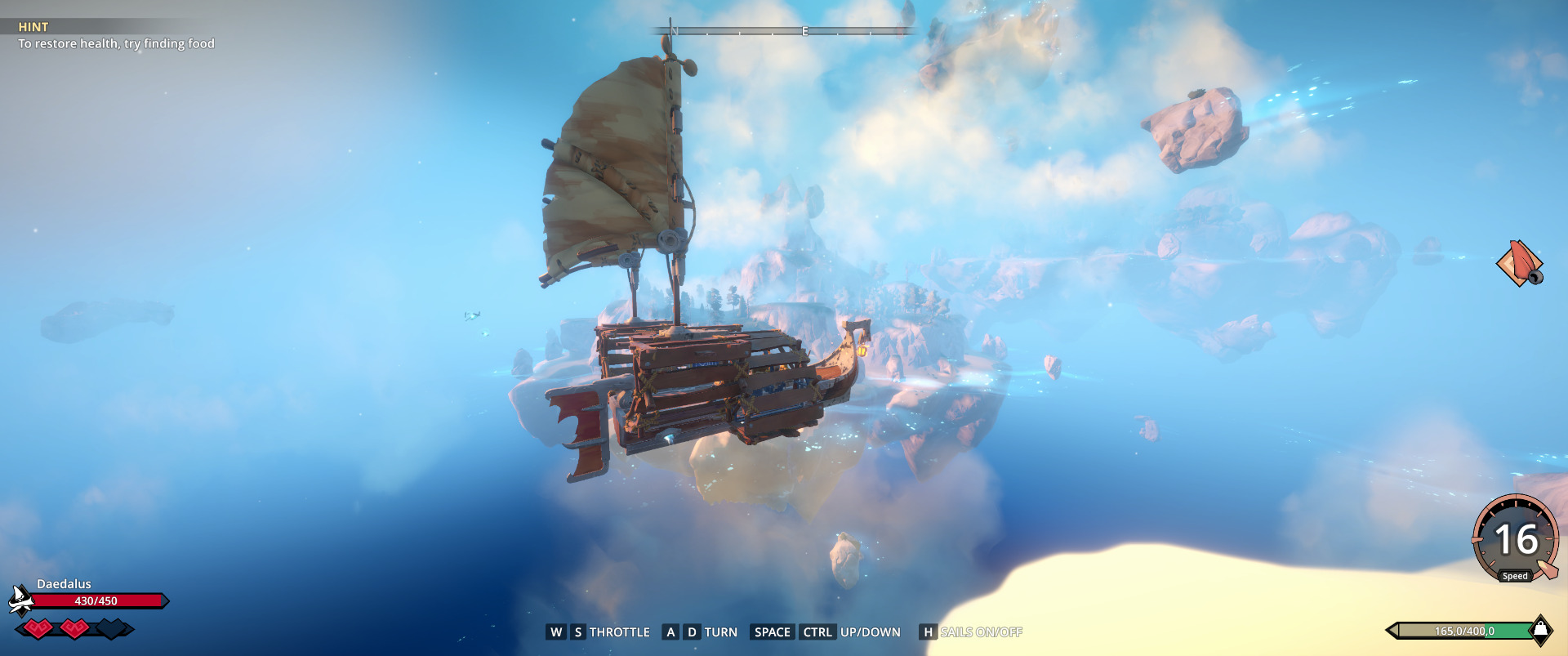 Miło, że gra nie wrzuca nas od razu na głęboką wodę bez żadnych wskazówek odnośnie do tego, od czego powinniśmy zacząć. Przejmując kontrolę nad postacią, dostajemy od razu nasz statek (choć pozbawiony niezbędnych do poruszania się żagli) oraz zadanie przywrócenia go do stanu używalności.