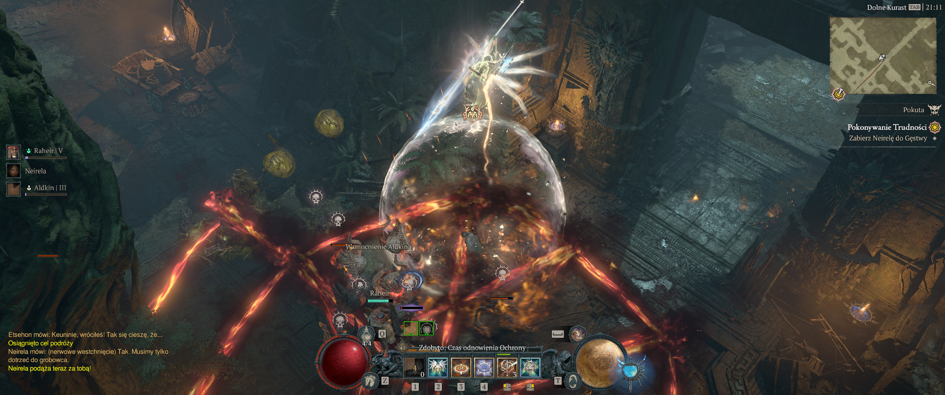 Najwięcej natomiast korzystałem ze zdolności przypisanych do Sędziego, który skupia się na zadawaniu gigantycznych obrażeń obszarowych. Najczęściej robi to, korzystając, z wirujących wokół niego, świętych młotów, ale może też rzucać nimi w pojedyncze cele i oznaczać je do Osądzenia, czyli zdetonowania przy użyciu świętej magii. Młotkowy Paladyn robi na polu bitwy pogrom iście imponujący.