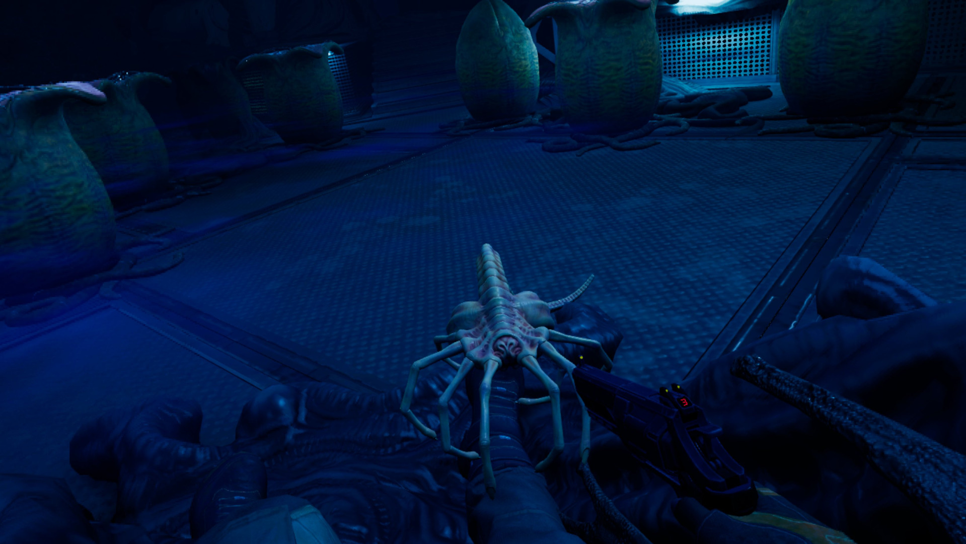 Strzelanie w Obcym jest satysfakcjonujące. Widać, że twórcy postarali się w tym aspekcie i "czuć" tutaj każdą broń. Ładowanie, celowanie czy utrzymywanie celu na muszce nie jest łatwe, tym bardziej że ksenomorfy to zwinne skurczybyki. Arsenał jaki nam oddano do dyspozycji to rewolwer, strzelba, karabin pulsacyjny i granaty. Każda broń różni się od siebie obsługą jak i systemem celowania. Muszę przyznać, że najfajniej strzelało mi się z rewolweru, który można trzymać jedną lub dwiema rękami, a przeładowywanie go to czysta przyjemność. Nie zmienia to jednak faktu, że astronomiczna ilość obcych występujących w końcowej fazie gry, wrażenia te potrafi skutecznie popsuć.