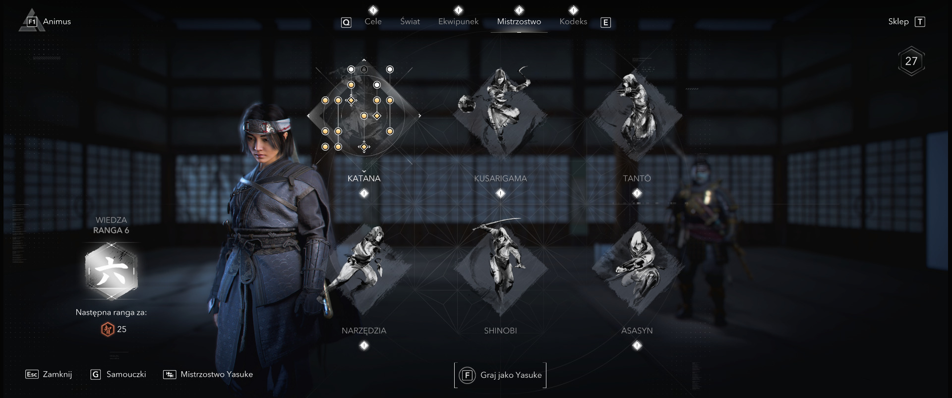 W Assassin’s Creed: Shadows naszą postać, czy raczej postacie, rozwijamy na kilka sposobów. Wykonując zadania i pokonując wrogów zdobywamy doświadczenie, a wraz z nim kolejne poziomy, które zwiększają nasze statystyki podstawowe, jak zdrowie czy obrażenia i nagradzają nas punktami mistrzostwa. Tym razem nie wystarczy jednak jedynie gromadzić hurtowych ilości doświadczenia. Kolejne poziomy drzewka rozwoju blokowane są przez rangę naszej wiedzy, do rozwoju której musimy gromadzić specjalne punkty. Te zyskujemy, kończąc kilka powtarzalnych i szybko nużących aktywności na mapie.