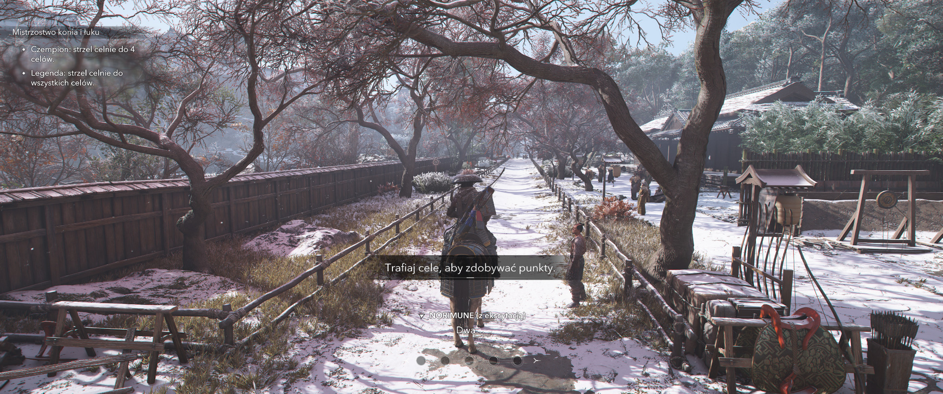 Głównie biegamy po świątyniach i modlimy się do chramów (zmuszani za każdym razem do oglądania przydługiej, niemożliwej do przewinięcia animacji) albo szukamy porozrzucanych na ich terenie zapisków. Owe miejsca kultu to jedne z najsłabszych kropek w serii. Szybko się nudzą, zajmują dużo czasu, sama aktywność jest nieciekawa, a nagroda bardzo skromna. Są też aktywności unikalne dla danego bohatera. Na przykład Yasuke może brać udział w lekcjach kata czy zawodach strzeleckich z końskiego grzbietu. Niestety, jest to równie nudne jak rajdy po świątyniach.