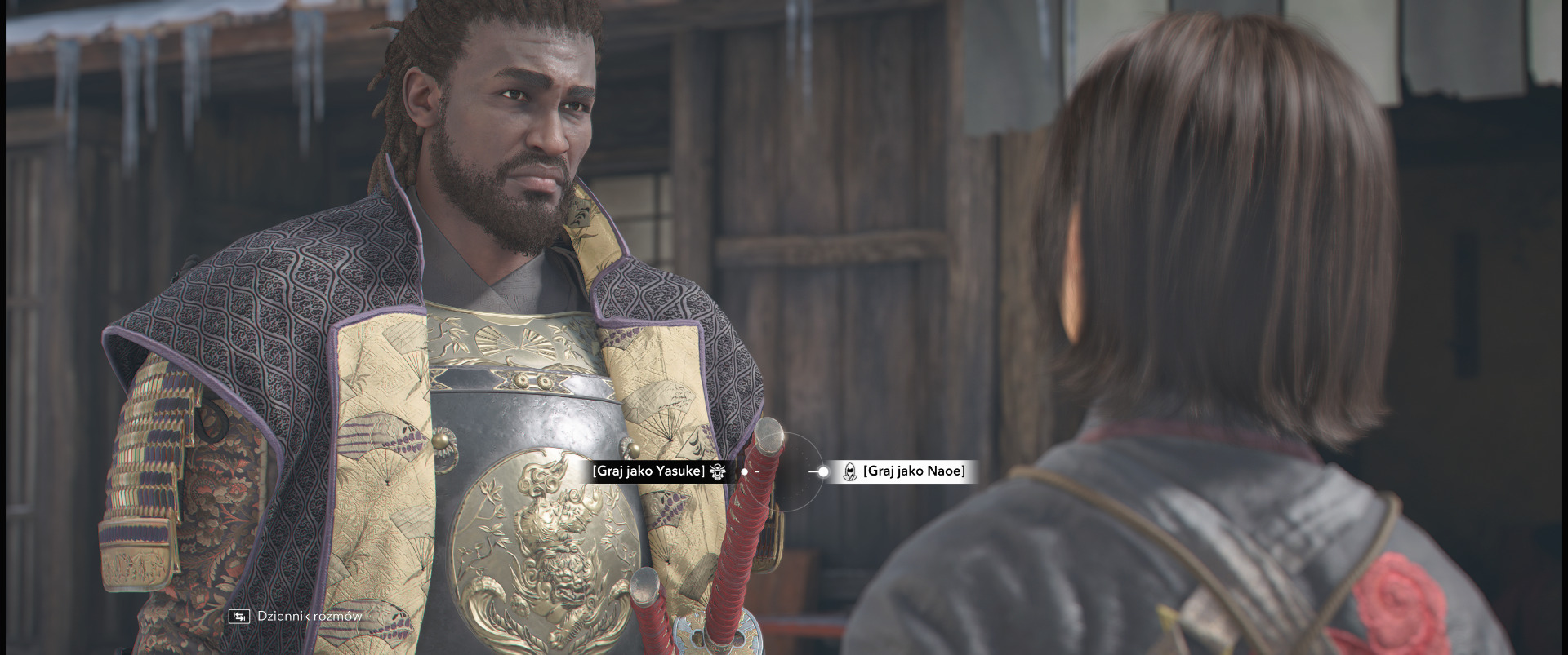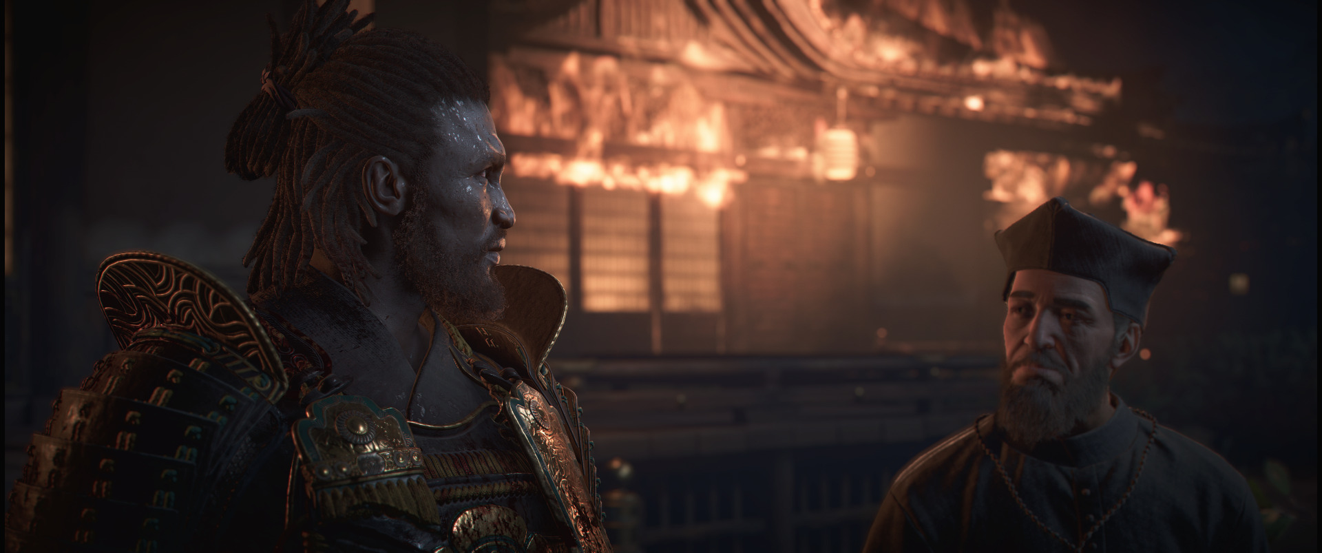 W grze bardzo brakuje interesujących postaci, które chciałoby się lepiej poznać. Dla mnie jedynie Nobunaga okazał się ciekawy. Główni bohaterowie napisani są raczej kiepsko. Z jednej strony mamy Yasuke, ostoję wszelkich cnót i moralności, który, gdy trzeba, potrafi zamordować byle wieśniaka, ale będzie mu wtedy bardzo smutno. Nasz samuraj często sprawia wrażenie bycia kimś tak dobrodusznym i empatycznym, że aż odechciewa się go słuchać, chociaż akurat jego aktor głosowy brzmi świetnie. Z drugiej strony stoi Naoe, z którą sympatyzowanie jest chyba jeszcze trudniejsze. Przez bardzo długi czas sprawia wrażenie nastolatki w okresie buntu. Na szczęście przechodzi ona pewną przemianę, my dowiadujemy się coraz więcej o jej przeszłości i momentami można poczuć do niej nieco sympatii.