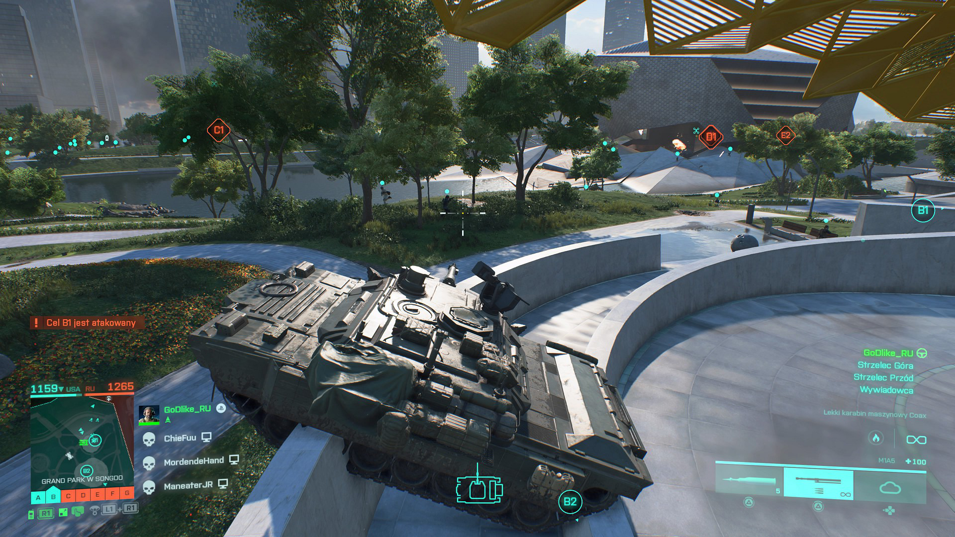 Obecnie jedynym rozwiązaniem, by w miarę normalnie prowadzić rozgrywkę, to wywołać poduszkowiec bądź samochód specjalnym menu zaopatrzeń (i uzyskać kolejny przegięty pojazd), zapakować doń drużynę i ruszyć na jakiś punkt, po którym "fala" już przeszła.Jeśli mam być szczery to taki sposób rozgrywki był jedynym, który w trybie podboju Battlefield 2042 ma jakiś sens.