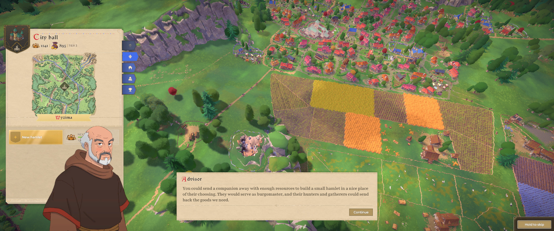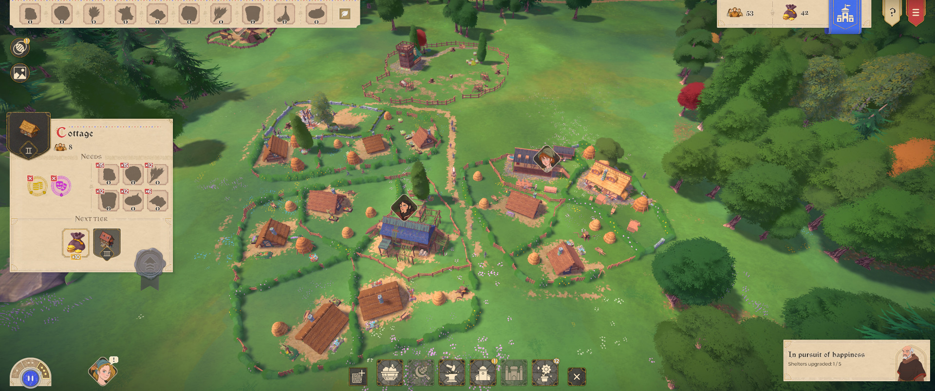 Po pewnym czasie pojawia się też możliwość przydzielenie jednemu z naszych obdarowanych smykałką do nauki podwładnych ich własnego przysiółka. Warto wybrać jako kierownika kogoś z jak najwyższymi umiejętnościami, ponieważ wtedy wszystkie budynki w okolicy pracują bardziej wydajnie. Żonglowanie przybocznymi to bardzo udany dodatek, który wprowadza do zabawy dodatkową warstwę optymalizacyjną.