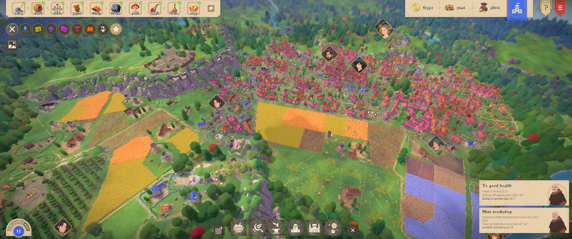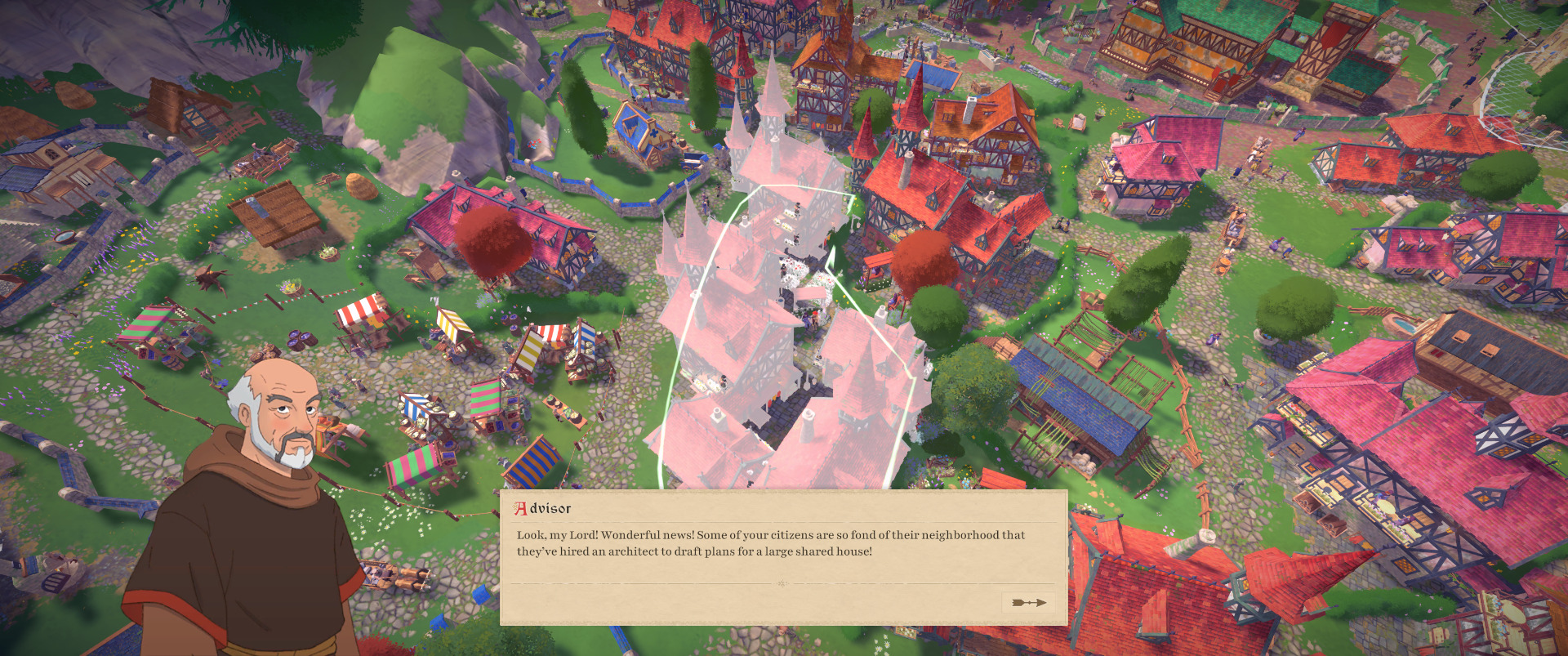 Obszar naszego królestwa nie jest podzielony żadną siatką i możemy rysować na nim działki, które automatycznie dzielą się na mniejsze parcele. Na tych z kolei, odwiedzający nas osadnicy automatycznie zaczynają stawiać swoje domostwa, zaś my mamy możliwość rozkazać postawienie na nich jednego z szerokiej gamy budynków użyteczności publicznej. System organicznych dystryktów to prawdziwa rewolucja w dosłownie, malowaniu naszej metropolii na tle w postaci mapy. Możemy tworzyć naprawdę skomplikowane układy, których ograniczeniem jest jedynie nasza wyobraźnia.