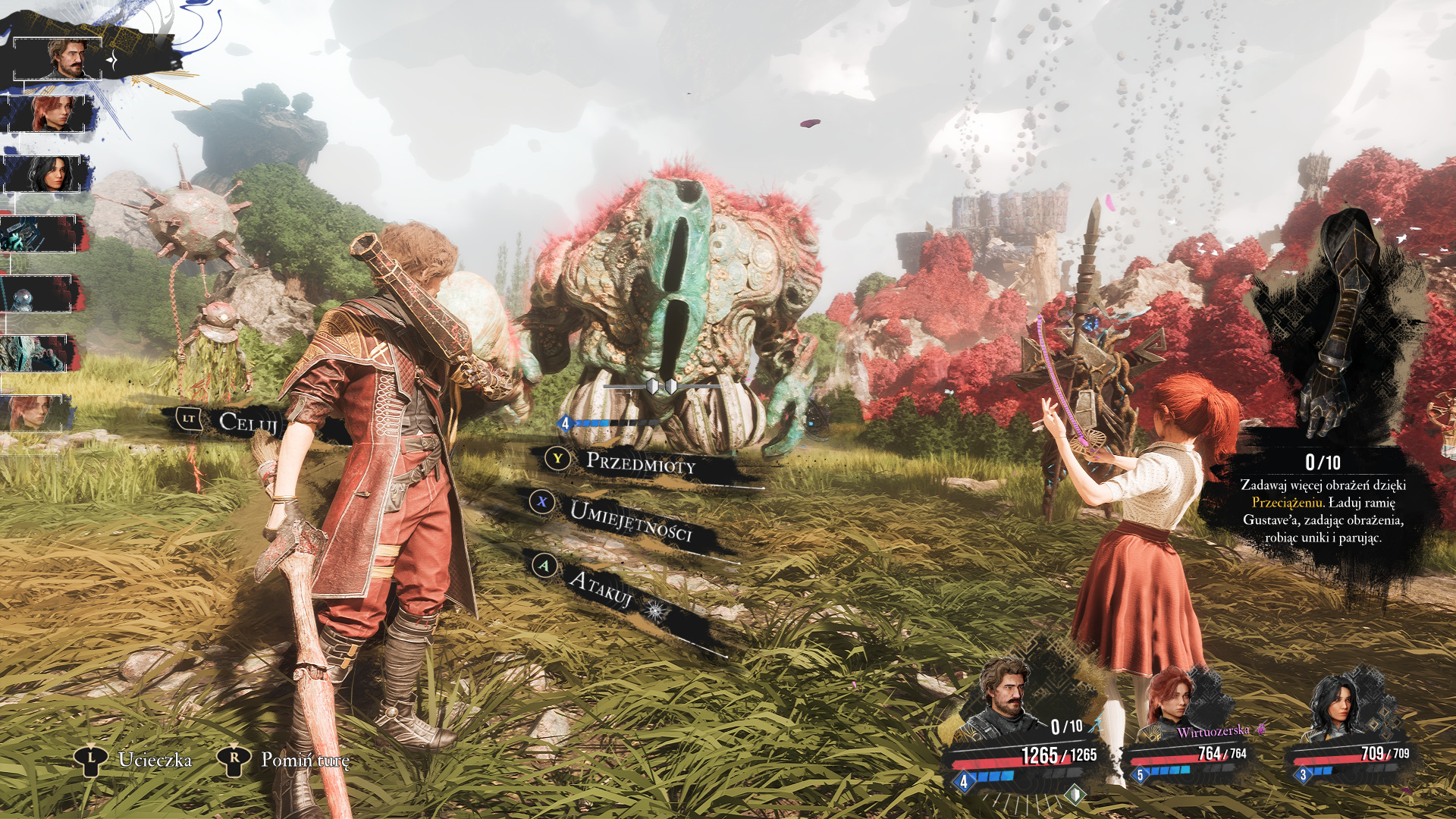 Zaoferowany przez Francuzów system walki to natomiast coś więcej niż zwykła turówka. Jako ogromny fan Final Fantasy X – zobaczyłem dosłownie fragment pierwszego zwiastuna i od razu wyłączyłem. Doszedłem do fragmentu z walką i wiedziałem, że na pewno ją sprawdzę, choć z tyłu głowy miałem, że raczej może to być przygoda klasy B. Biję się w pierś. Niczym niewierny Tomasz, zobaczyłem i uwierzyłem.