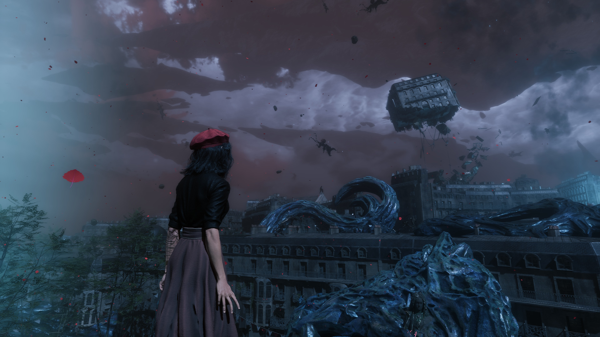 Clair Obscur: Expedition 33 wygląda jak interaktywna galeria sztuki – założę się, że pieczę nad cutscenkami mieli wyjątkowi artyści, bo praktycznie każdy kadr przerywników to dla mnie festiwal screenshotów. Każda lokacja, każdy przeciwnik – wszystko jest tutaj przesiąknięte klimatem i pięknem. Inspiracje Beksińskim czy surrealistycznym malarstwem są widoczne na każdym kroku. Widok wygiętej wieży Eiffla czy zniszczonych miasteczek chwyta za serce. Owszem, czasami widać biedę podczas eksploracji, a niektóre tekstury ładnie wyglądają jedynie z dystansu, ale ogólne wrażenia z obcowania z tym światem w pełni wynagradza wszelkie niedoróbki.