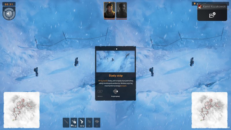 Niestety multiplayer na podzielonym ekranie wiąże się również z kolejnymi problemami technicznymi. Wspominane już kłopotliwe ramki z podpowiedziami wyświetlają się w tym trybie dokładnie na samym środku ekranu, zasłaniając sprawiedliwie widok obu graczom. Zdarzyło mi się również, że po dołączeniu do rozgrywki drugiego gracza, zalogowanego jako gość, gra przełączyła mi jego konto jako główne, nagrywając wszystkie postępy właśnie na ów koncie. Skutkowało to utratą wszystkich zapisów i koniecznością powtarzania całej misji od początku.