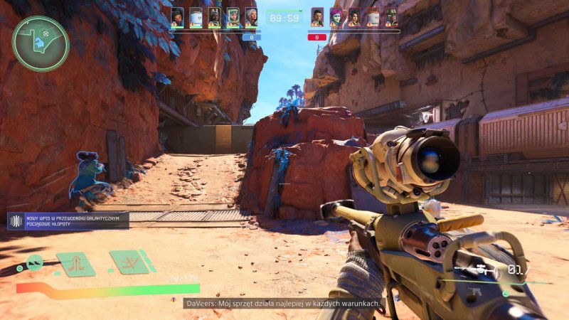 Czy w takim razie Concord oferuje coś dla graczy singlowych? Można tak powiedzieć, ale to trochę wstyd. Jeżeli graliście w Titanfall 2, to pewnie pamiętacie wymagający bieg szkoleniowy. Tutaj można znaleźć coś podobnego. Gra oferuje pięć prób czasowych, które trzeba pokonać w jak najkrótszym czasie, aby wbić się na globalną listę rekordów. O ile komuś nie zależy na skracaniu wyniku o każdą sekundę, to mówimy wyłącznie o dodatku na kilka minut zabawy. Na ten moment to wszystkie sposoby, na jakie możecie poznać grę. Mam wrażenie, że bardziej przyłożono się do stworzenia historii świata i bohaterów niż do samej rozgrywki.