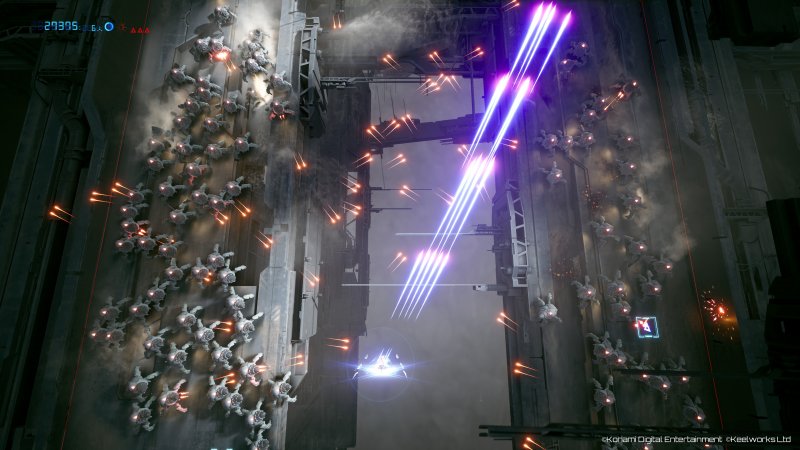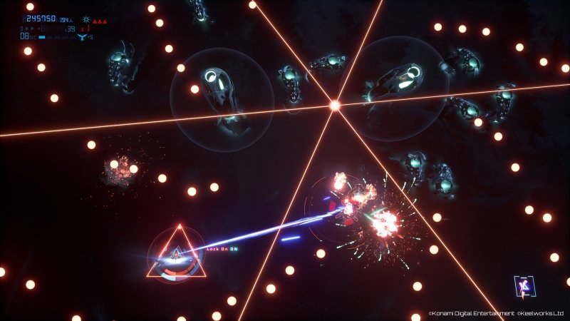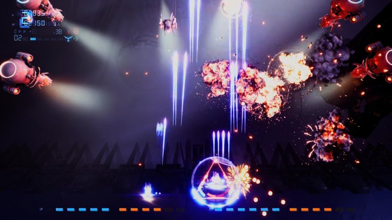 Jeśli myśleliście, że przeważające ilości wroga to jedyna trudność, jaka na was czeka, to jesteście w błędzie. Nasz myśliwiec posiada zaawansowane systemy przekazywania energii, co mocno urozmaica rozgrywkę, ale i czyni ją bardziej wymagającą. Żebyście mogli zrozumieć ich działanie, przypomnijcie sobie jedną z kultowych scen z filmów SCI-FI kiedy piloci np. przekazywali maksymalną moc na pole siłowe/tarczę lub odwrotnie, na systemy ofensywne statku. Tutaj jest dokładnie to samo, w sytuacjach podbramkowych, kiedy nie ma gdzie uciec (a dzieje się to często) warto przekazać całą moc na tarczę, aby móc to przetrwać. Każde otrzymanie obrażeń oczywiście odbiera nam część energii, a uzupełnić ją możemy poprzez niszczenie sił wroga. Pomysł na ten system jest przemyślany i bardzo mi się podoba. Szczerze mówiąc nie przypominam sobie abym widział coś podobnego w grach tego gatunku.