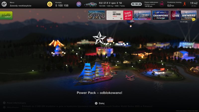 Power Pack jest dodatkiem nieco innym niż większość płatnych rozszerzeń na rynku. Dlaczego? Otóż nie dostajemy tutaj pakietu nowej zawartości, co w przypadku gier wyścigowych zwykle oznacza kolejne maszyny do jazdy, trasy czy kosmetykę. Pierwsze DLC dla GT7 skupia się na zapewnieniu możliwie jak najwierniejszego doświadczenia wyścigowego. Zanim przejdę do szczegółów i wyłożę, co mam przez to dokładnie na myśli, prezentuję ogólną zawartość dodatku.