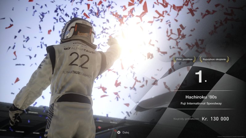 Muszę uczciwie przyznać, że taka forma zabawy z Gran Turismo dostarczyła mi odmiennych doświadczeń niż te, z którymi byłem obeznany w serii. Wyścigi są bardzo emocjonujące, a AI czyha na każdy, choćby najmniejszy błąd, aby zdobyć przewagę (przez co zaczynając wyścig z 1. miejsca, często już po pierwszym zakręcie traciłem prowadzenie). Presja jest ogromna, co potęguje brak możliwości szybkiego restartu. Trzeba więc zacisnąć zęby i doprowadzić zmagania do końca, bez względu na wynik. Pozwoliło mi to nabyć nieco pokory i pogodzenia się z tym, że nie zawsze można wygrywać. Zupełnie jak w zawodach w prawdziwym życiu.