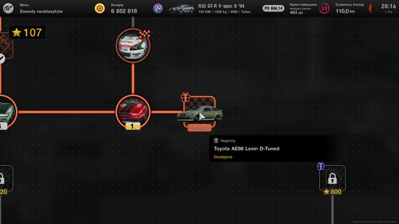 Między poszczególnymi zawodami mamy pola zablokowane za określoną liczbę gwiazdek. Jeśli zdobędziemy ich wystarczająco, odblokujemy zawartość, która się za nimi kryje. Są to różnego rodzaju nagrody, od biletów na losowanie wszelakich dóbr w grze (o różnym poziomie rzadkości) po gwarantowane benefity w postaci kredytów czy konkretnych pojazdów. Po ich zdobyciu często możemy odblokować kolejne zawody w tej samej tematyce, po których ukończeniu pojawią się kolejne bonusy, tym razem o większej wartości.