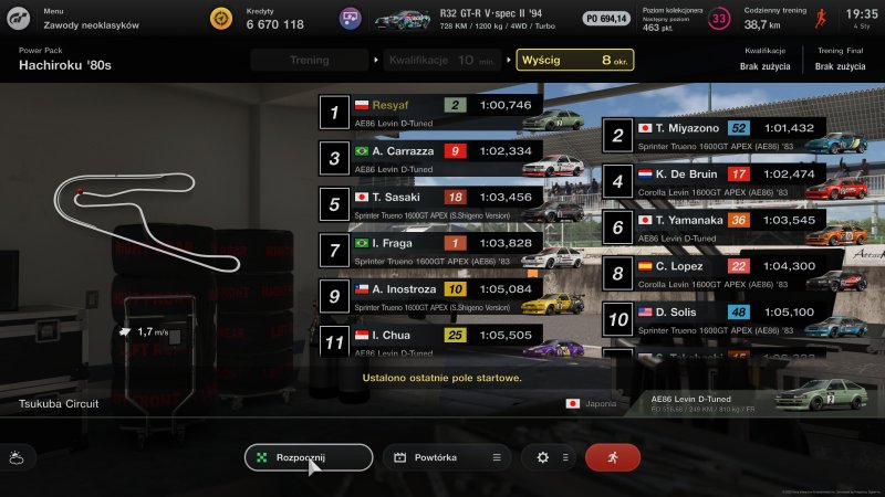 Przy pierwszym podejściu się tym jednak niestety zbytnio nie przejąłem (gram w tę serię od dziecka, co to dla mnie) i dość szybko przekonałem się o swoim błędzie. W tych zmaganiach przeciwnicy są sterowani przez wspomniane wcześniej AI Sophy w wersji 3.0 i dostałem od niej solidny wycisk, kończąc cudem na szóstej pozycji. Wielu graczy w tej sytuacji od razu próbuje zrestartować zmagania, ale tutaj tak łatwo nie ma!
