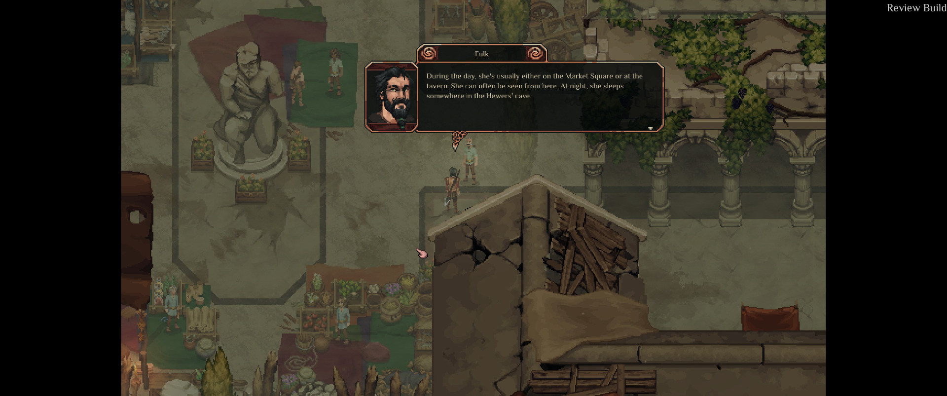 W krainie bogów szybko poznajemy całkiem ludzkie postacie, mierzące się z bardzo przyziemnymi problemami. Przykładowo, o przysługi poproszą nas drwale potrzebujący naprawić zniszczony most czy myśliwi szukający wsparcia w łowach. Początkowo każdy reaguje na nas podejrzliwie, w końcu jesteśmy tylko chuderlawym obdartusem, ale wykonując kolejne zadania, budujemy swoją reputację, powoli stając się kimś, z kim należy się liczyć. Szybko też poznajemy dwie frakcje, do których będziemy mogli dołączyć, mające kompletnie odmienne wizje odnośnie do przyszłości mitycznego terytorium.
