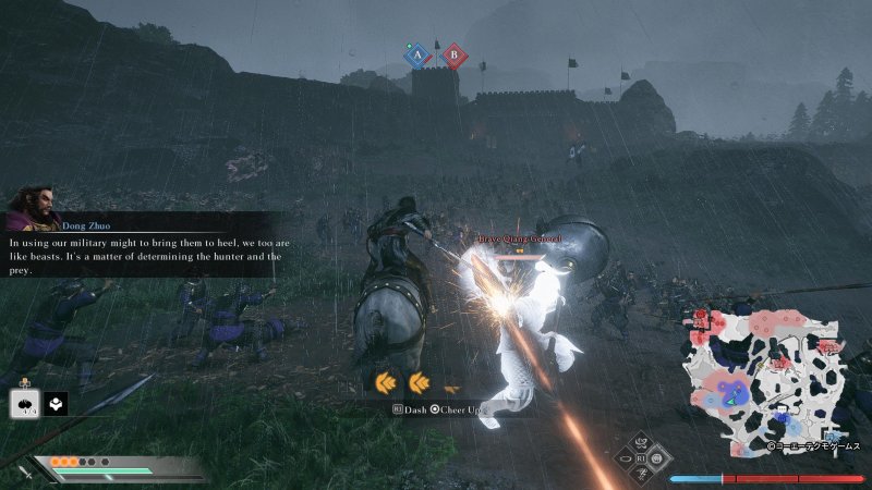 Oczywiście jak to w tytułach z gatunku musou bywa, większość żołnierzy nie stanowi praktycznie żadnego zagrożenia dla naszego bohatera. Ich ataki zadają marginalne obrażenia, a my jesteśmy w stanie eliminować całe hordy przeciwników bez żadnego problemu, i to na masową skalę. Nie mówiąc już o tym, że kiedy naładujemy pasek musou naszego herosa, będziemy w stanie odpalić atak specjalny, którym możemy położyć nawet tysiąc wrogów jednocześnie. Prawdziwe wyzwanie zaczyna się kiedy na polu bitwy napotkamy bohaterów lub generałów służących wrogiej stronie. Potyczki z tymi rywalami są zdecydowanie trudniejsze i wymagają od nas większego skupienia. Kiedy jednak pokonamy jednego z dowódców, jego żołnierze zazwyczaj automatycznie uciekają w popłochu z batalii.