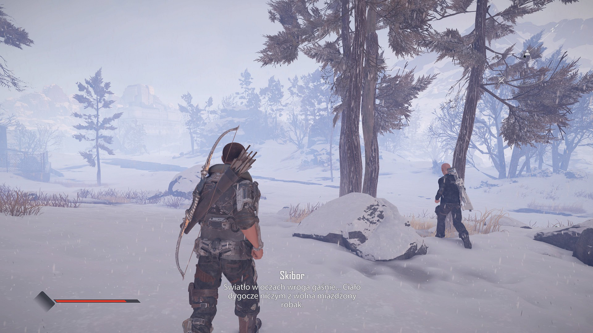 Brzmi dobrze? Na papierze tak. Niestety sama broń i mechanika walki to nie wszystko, bo przeciwnik też musi myśleć i starać się naszą postać pokonać, a z tym ma wprost ogromne problemy. Pojedynki z potworami są jeszcze do przełknięcia, bo czasami, w przerwach od dziwacznych ruchów i wystrzeleń w kosmos udaje im się na nas zaszarżować i zadać kilka ciosów z rzędu, ale walka z ludźmi woła o pomstę do nieba. O ile poprzednio mieliśmy do czynienia z serią różniących się jakością elementów, to w przypadku sztucznej inteligencji obserwujemy kompletną katastrofę. Większość humanoidalnych wrogów da się pokonać po prostu przytrzymując analog do tyłu i strzelając raz po raz z łuku (bądź karabinu).