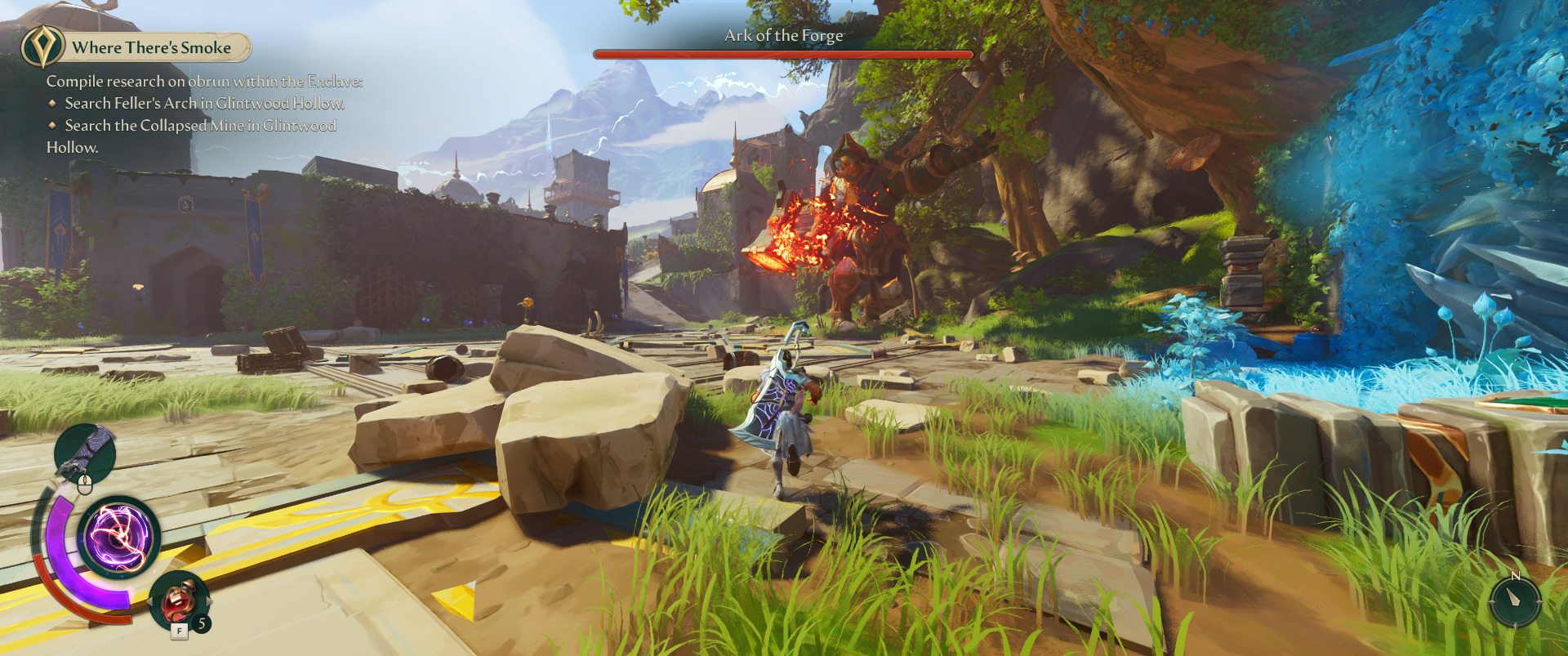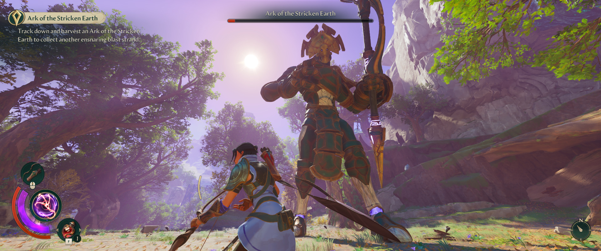 Jeżeli widzieliście jakiekolwiek filmy z Eternal Strands, to pewnie wiecie, o czym teraz będzie mowa. Magia oraz starcia z gigantami. Każdą mapę, jaką przyjdzie nam zwiedzać, przemierza zawsze albo majestatyczny konstrukt, albo równie olbrzymia bestia. Polując na nie, pozyskamy nie tylko, niczym w serii Monster Hunter, materiały, które posłużą nam do ulepszania naszego arsenału, ale też esencje, dzięki którym rozwiniemy nasze magiczne umiejętności.