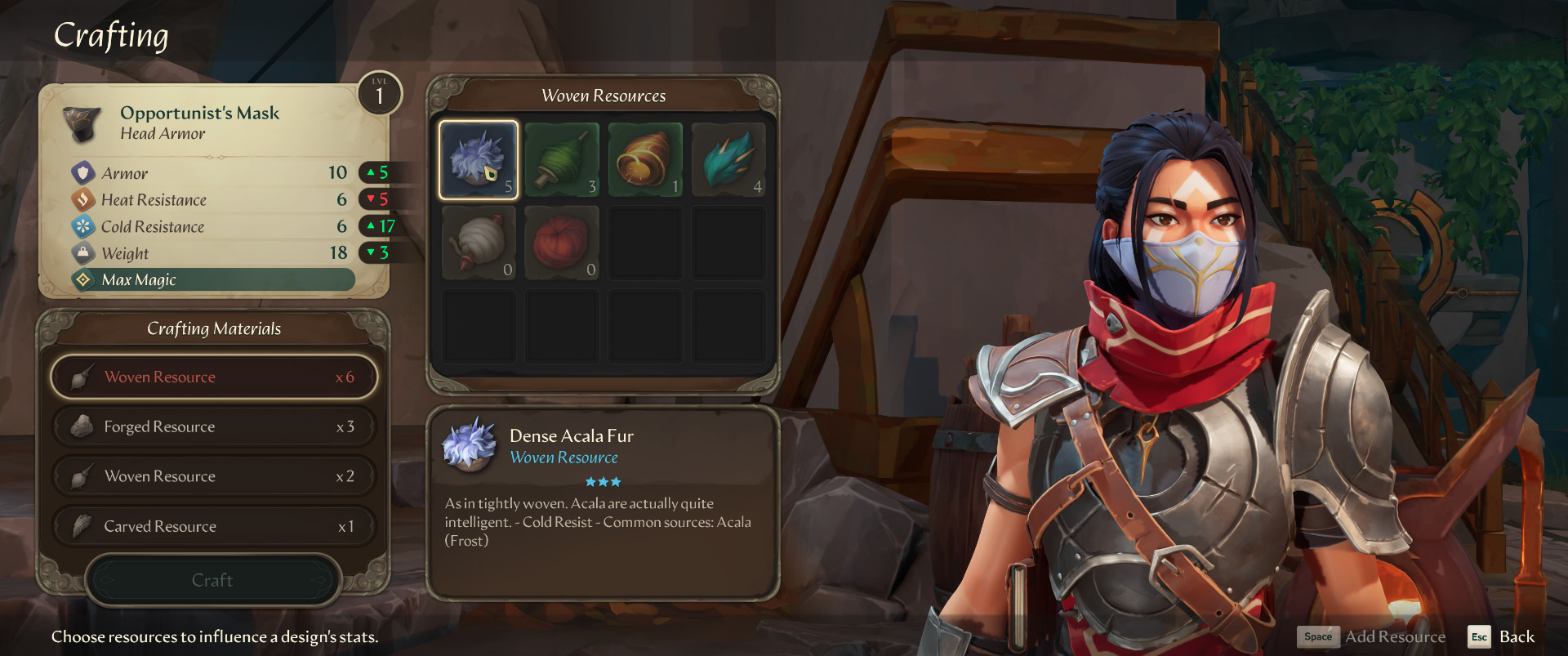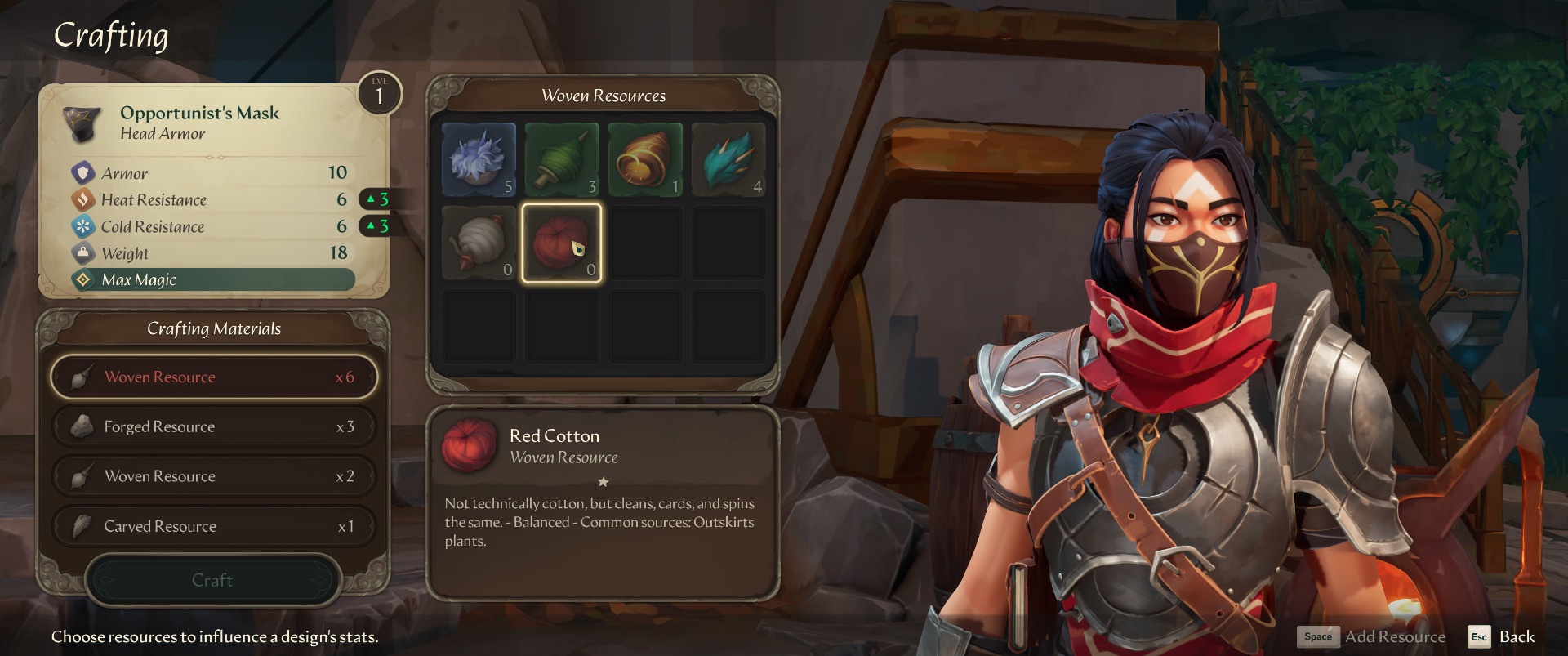Posiadając przepis na, przykładowo, napierśnik, mamy w nim wyszczególnione jedynie ile i jakiego typu materiałów potrzebujemy do jego stworzenia. Zawsze są to cztery rodzaje zasobów w różnych kombinacjach: do rzeźbienia, kucia, garbowania i tkania. Jedna rzecz może posiadać dwa sloty na skóry, a inna na metale. W każdej z czterech grup mamy dostępne dziesiątki surowców o zróżnicowanych właściwościach, wpływających zarówno na statystyki przedmiotu, który chcemy stworzyć, jak i jego wygląd. To stanowi naprawdę świetne rozwiązanie.