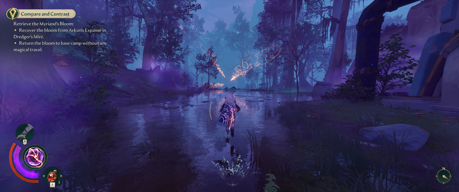 Przy bloku pozostając, ruch ten dostępny jest jedynie z użyciem tarczy, będącej odpowiednikiem niskiego poziomu trudności. Tak jak w grach From Software mogliśmy wybrać niższy poziom trudności, korzystając z magii, to tego samego dokonać możemy w Eternal Strands, decydując się na tarczę właśnie. Momentami wręcz kuriozalne jest to, jak potężne ataki pozwala nam ona zablokować. Jakby tego było mało, daje ona także opcję parowania ataków, po którym wyprowadzić możemy satysfakcjonującą kontrę.