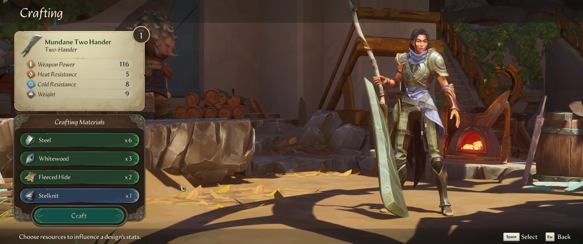 Wytwarzanie to jeden z najlepszych elementów Eternal Strands i jedna z lepszych (a może nawet najlepsza!) implementacji tego systemu, z jaką spotkałem się w grach. Po pierwsze, z pozyskanych w świecie surowców, zmajstrować możemy kolejny element uzbrojenia. Standard, pomyślicie, ale głębi jest tu znacznie więcej, niż to do czego przyzwyczaiła nas branża. Podobne rozwiązanie zaimplementowane było w Dragon Age: Inquisition.