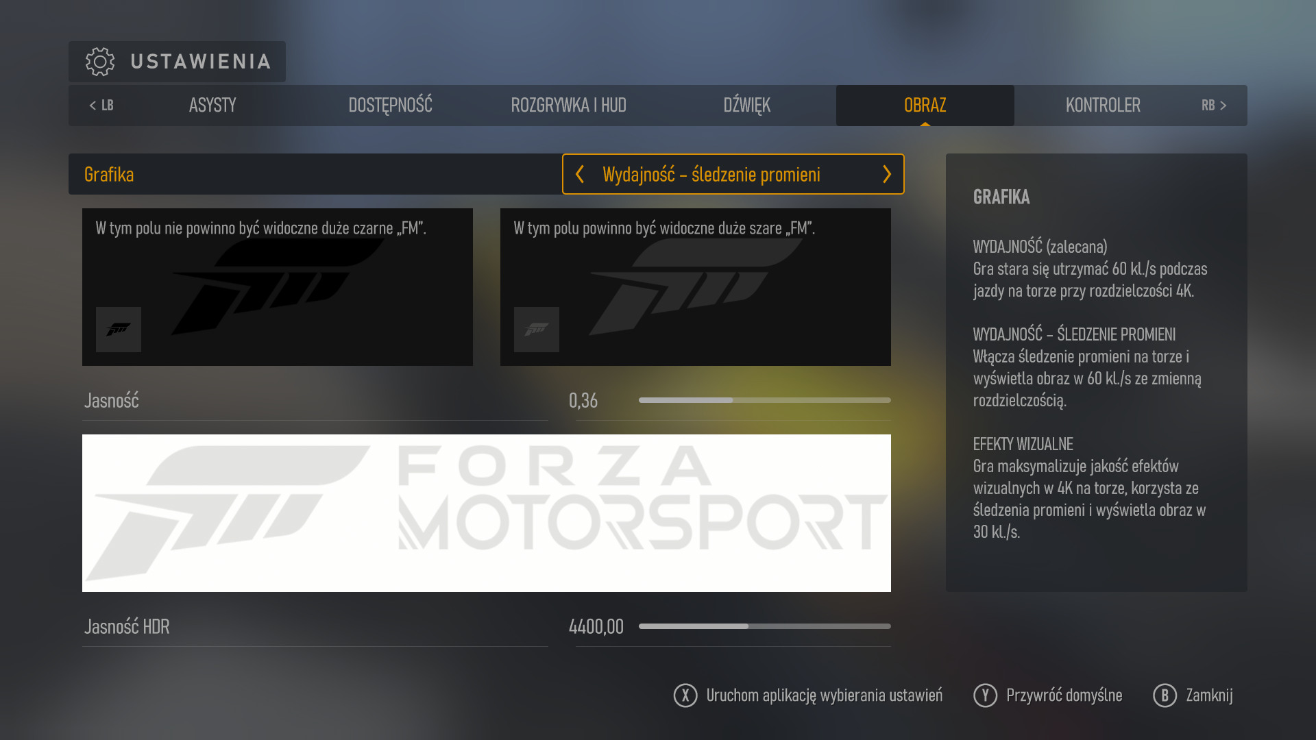 Forza Motorsport to graficzna uczta dla naszych oczu. W oko rzucają się dopieszczone, jak nigdy dotąd, modele samochodów i realistyczne oświetlenie otoczenia. Choć w internecie pojawiają się opinie, że Forza Motorsport 7 wygląda lepiej niż tegoroczna odsłona, to muszę temu zdecydowanie zaprzeczyć. To, z jaką pieczołowitością wykonane są modele aut, przyćmiewa wszystko to, co do tej pory widziałem w grach wyścigowych. Odbicia na karoserii oraz gra świateł grają tutaj pierwsze skrzypce i widać, że to ten element zyskał najbardziej z mocy nowych konsol. Gra na Xboxie Series X, oferuje 3 tryby graficzne: