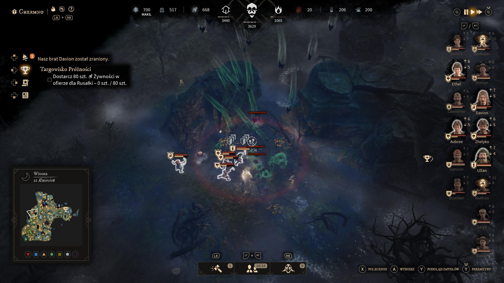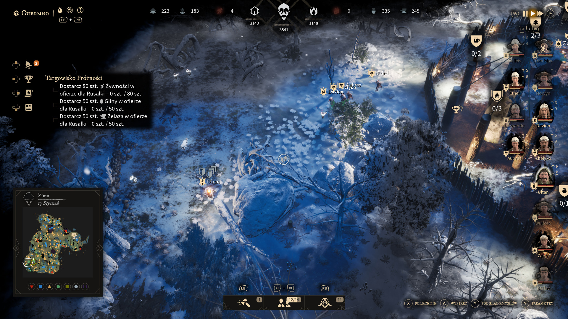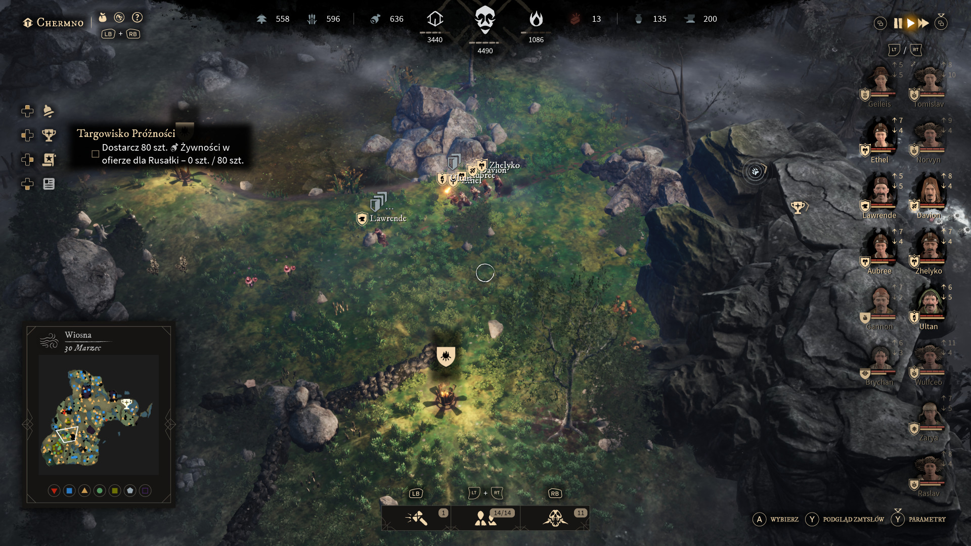 Porównując "Gord" do "Frostpunka", miałem na myśli przede wszystkim wybory moralne, które sporadycznie pojawiają się podczas rozgrywki. Gra co jakiś czas informuje nas o jakimś problemie w mieście, który musimy rozwiązać, a konsekwencje nie zawsze są znane. Gdy moja jednostka poległa, po pewnym czasie pojawiła się informacja, że jej partner z grodu nie może bez niej żyć i chce złożyć się w ofierze Bogom. Odmówiłem. Za jakiś czas ta jednostka popadła w obłęd i zaczęła atakować pozostałych osadników. Takich wyborów jest więcej i odnoszą się do wielu kwestii w grze. Myślę, że to bardzo ciekawy element produkcji.
