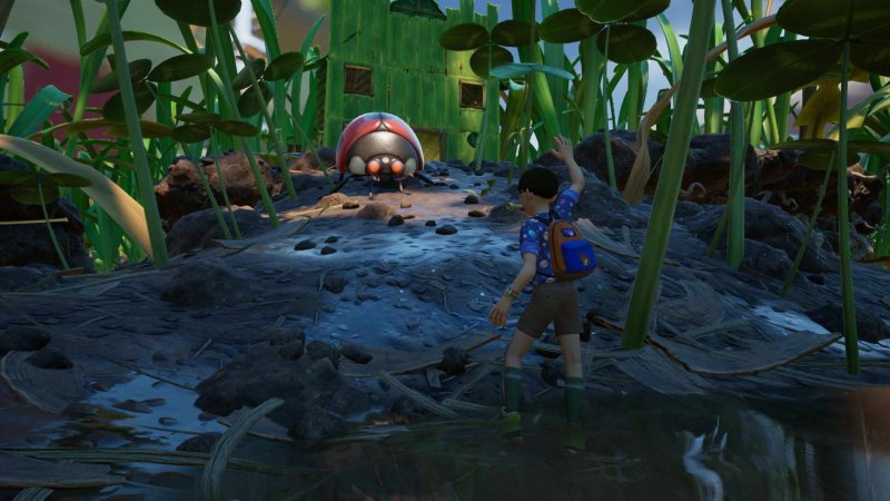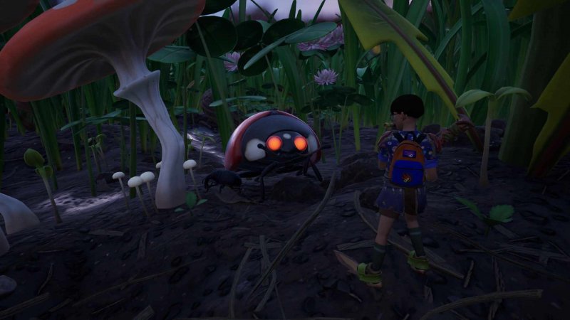Kolorowy, trochę kreskówkowy styl artystyczny dodaje grze uroczego, dziecięcego klimatu, który bardziej kojarzy się z survivalem typu Minecraft niż The Forest. Dominującym kolorem jest oczywiście zieleń. Jak już wcześniej wspomniałem, jestem pod wrażeniem wykreowanego świata. Na każdym kroku znaleźć można coś, co przyciąga uwagę, co w zwyczajnym zadbanym ogródku wcale nie musi być takie oczywiste. Na pochwałę zasługują również modele owadów. Każdy z nich wygląda inaczej i posiada wiele charakterystycznych cech. Zresztą co tu dużo mówić, pająki zostały tak świetnie wykonane, że gra posiada tryb arachnofobii, który pozwala zmienić je w syczące, latające kulki.