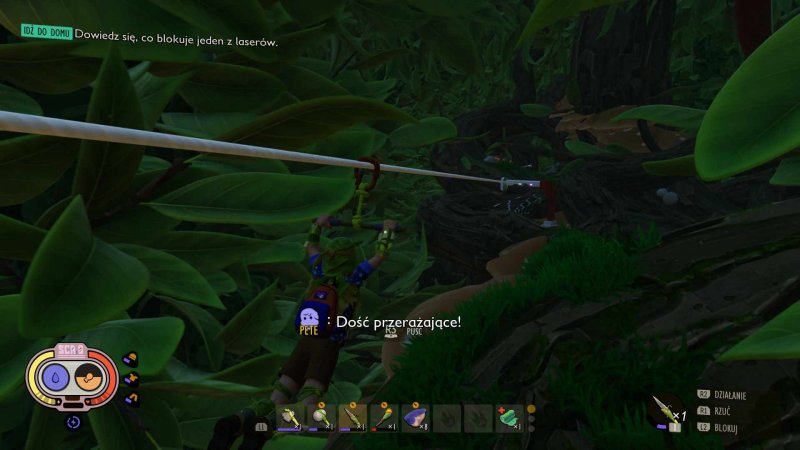 Produkcja posiada aż trzy aktywnie używane koła wyboru, z czego jedno ma kolejne trzy przedziały. Można zmieniać je na przemian, dostosowując w ten sposób przedmioty widoczne w dolnym pasku szybkiego dostępu. Problem w tym, że na konsolach nie jest to „szybkie”, więc jeżeli gracz chce zmienić broń, albo uleczyć się to powinien otworzyć koło i wybrać konkretny przedmiot. W momencie walki z przeciwnikiem tworzy gigantyczny chaos przez używanie koła. Zbyt łatwo jest nieintencjonalnie zmienić sobie aktualnie wybrany zestaw, co wielokrotnie mi się zdarzyło i utrudniło dostęp do potrzebnych przedmiotów. Szczególnie w trakcie walki z mocnym owadem nie jest miło, gdy nadchodzi cała seria ataków do zablokowania, a w tym samym czasie trzeba szukać, gdzie akurat zapodział się bandaż.