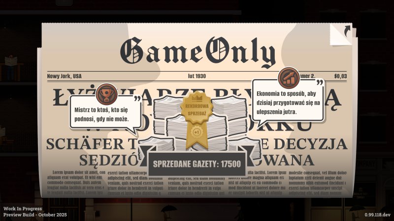 Czyli kilka słów na tego, o co chodzi w tej grze i jak w to w ogóle grać, zanim przejdziemy do technikaliów oraz wrażeń, które towarzyszyły mi podczas przechodzenia tego tytułu. Gdybyśmy mieli maksymalnie uprościć kwestię tego, co to za gra i jak się w to gra, to zasadniczo całość dałoby się skwitować jednym zdaniem. Brzmiałoby ono: skompletuj gazetę na niedzielę i sprzedaj ją w jak największej liczbie egzemplarzy.