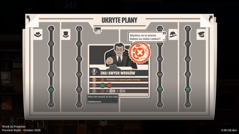 Za te ostatnie możemy nabyć ulepszenia w różnych punktach na mapie, które przyspieszą pracę naszych zatrudnionych przez nas osób, zagwarantują nam dodatkowe pieniądze lub dadzą możliwość odblokowania nowych, tudzież dodatkowych stanowisk. Punkty wpływu możemy również zbierać, poprzez wykonywanie zadań tak zwanej ukrytej agendy. Zasadniczo jest to nasze wejście do gry o władzę w mieście, która toczona jest przez cztery frakcje.