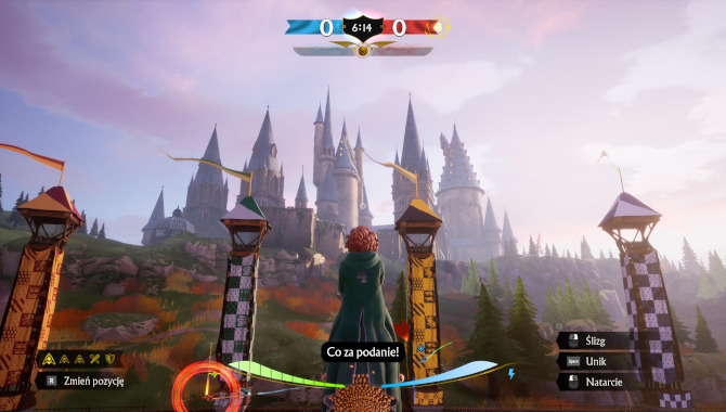 Ale tak narzekam, a trzeba przyznać, że oprawa meczów jest całkiem przyjemna np. grając w Beuxbatons komentatorka wtrąca francuskie słówka i ma mocno francuski akcent. Efekty za miotłami czy po zdobyciu punktu mogą cieszyć oko, a nawet pokazanie gracza, który zdobył punkt przypomina mi prezentację postaci Victora Kruma na początku Czary Ognia, ale w wersji lite. Styl kreskówkowo-disneyowy dodaje grze sporo uroku, więc nawet młodsi gracze będą zerkali na ekran jeśli ktoś akurat będzie w to grał w ich otoczeniu.