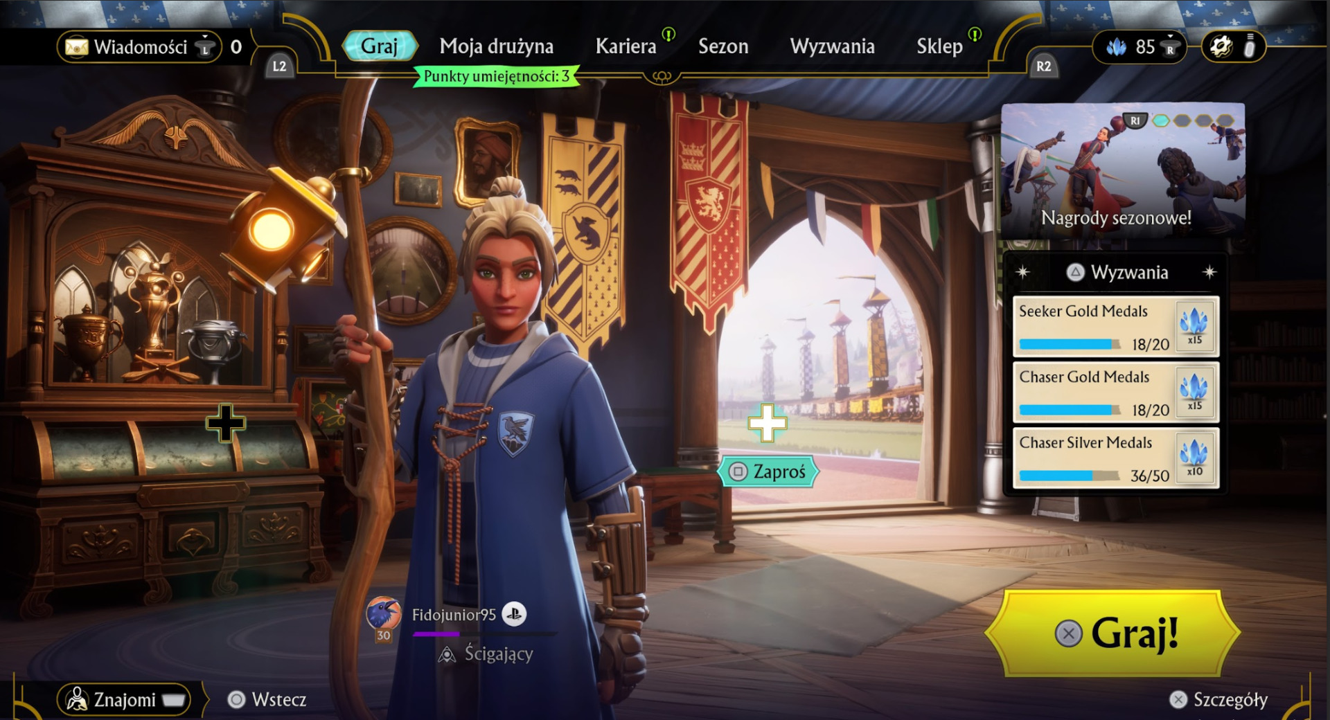 Nie tylko na boisku można starać się lepiej, bo jest też sporo rzeczy do wybrania czy ulepszenia, ale nie znajdziemy tu nic niezwykłego. Mamy masę elementów kosmetycznych, które są typowe dla gier online, od emotek możliwych do używania po zdobyciu punktów, po pozy zwycięstwa oglądane na koniec meczu, czy różnego rodzaju elementy kosmetyczne dla naszych zawodników. Oprócz tego w tytule znajdziemy także skórki znanych postaci, które zakupimy za walutę zdobywaną w grze. Do wyboru mamy skin Giny, Hermiony czy samego Harry'ego, ale na te faktycznie znane skórki trzeba już grindować.