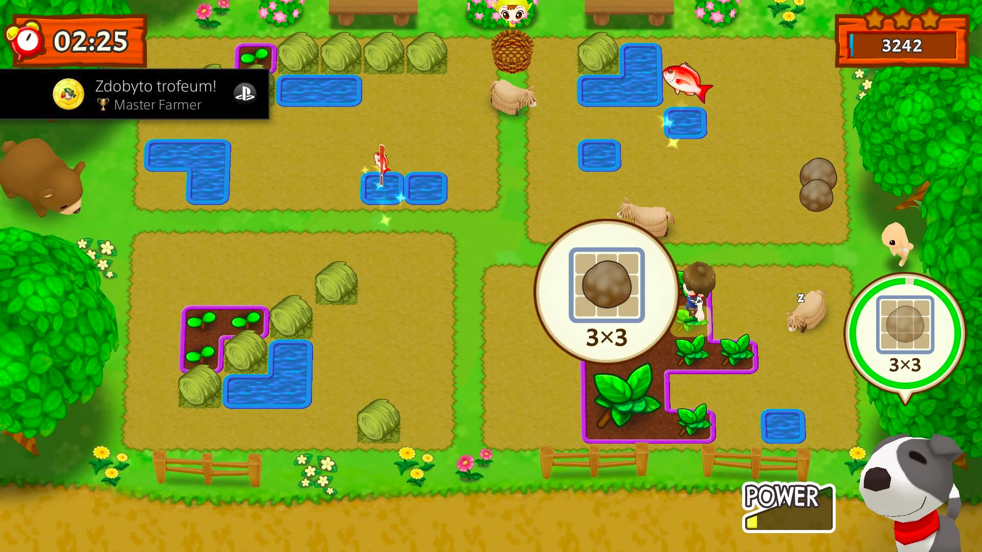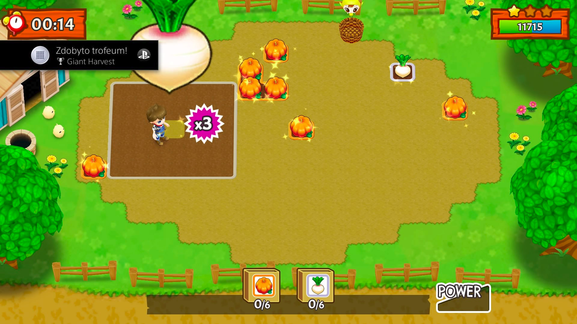 Nagrodą za spełnianie requestów, wymaganych roślin czy po prostu dowolne zbiory jest zapełnianie paska "Power", który na kilkanaście sekund zamienia wszystko co pojawia się na planszy, w od razu dojrzałe warzywa, a zwierzęta dają swoje produkty praktycznie bez jedzenia, co kilka sekund. Tryb Power jest więc niesamowicie pożądany, bo w wielu etapach to jedyny moment, gdy będziemy porządnie punktować. Zwłaszcza później, gdy pojawią się nowe warzywa które już nie potrzebują jedynie trzech ułożeń, a 4-6 (najtrudniejsze są jagody) a tutaj w ułamek sekundy będą już dojrzałe. Na czas tego trybu nasz zegar (zazwyczaj między 2:00 a 3:00 minut) całkowicie się zatrzymuje. Większa ilość bonusów Power oznacza więc nie tylko więcej punktów, ale i przedłużenie rozgrywki, a same warzywa których nie zbierzemy zostają potem na planszy i można je przyłączać do tych niedojrzałych. Dobra taktyka pozwoli więc zdobyć kolejne ekstra punkty nawet po zakończeniu trybu Power.