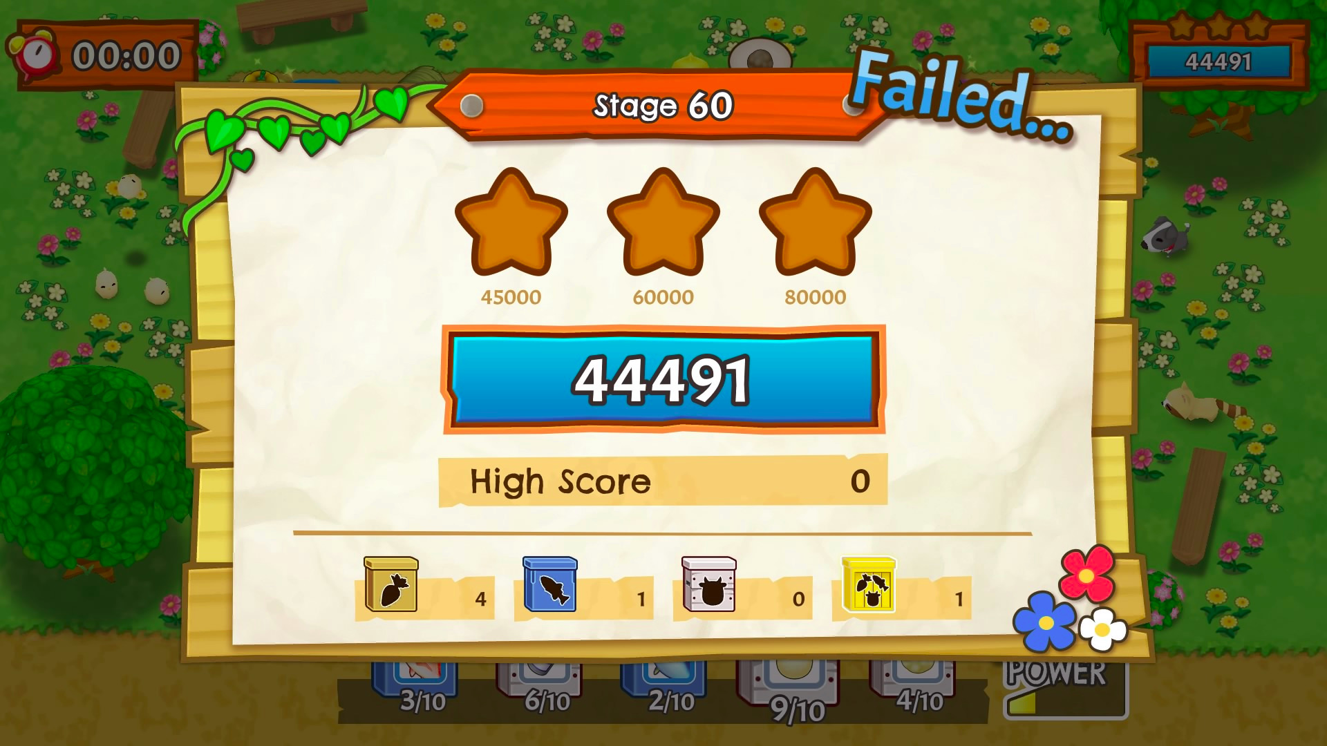Gdy zagrałem w pierwsze kilka etapów, okazało się, że gra jest całkiem wciągająca, a układanie warzywek nie stanowi żadnego wyzwania i z palcem w nosie zdobywałem maksymalną ocenę za każdy kolejny etap, czasem nawet dwukrotnie przekraczając wymagania. Cóż - przyznam, ktoś kto projektował grę zrobił to chyba specjalnie, aby pierwsze etapy nas wciągnęły, po już po kolejnych kilku, gdy zaczęły pojawiać się nowe zasady, przestało być tak fajnie i zacząłem mieć pierwsze problemy. W końcu, gdzieś w granicach 60 etapu miałem pierwszą niezaliczoną planszę - mimo niemal trzech minut na zegarku nie dałem rady zdobyć nawet najniższego progu punktowego, chociaż zabrakło mi mniej niż 1%.