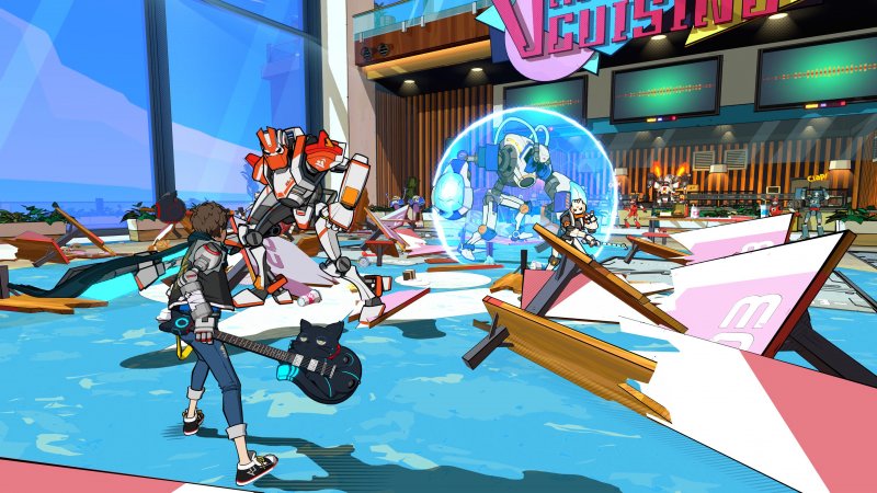 Starcia z przeciwnikami są stosunkowo proste do wyuczenia, a osoby, którym do muzyki tupie nóżka, szybko same wyznaczą sobie rytm wciskania przycisków. Na łatwym oraz średnim poziomie trudności całość można ukończyć, grając wyłącznie przy użyciu lekkich ataków. Tak jak wspomniałem, jedyny problem stanowią ruchy, które trzeba zablokować. Nieuwaga i olewanie ich kosztuje sporo życia, więc warto się skupić i wykonać je dobrze, co jest wynagradzane szybką eliminacją wrogiego robota. W grze znajduje się ponad czterdzieści różnych kombinacji, co umożliwia odnalezienie swojego stylu, który pasuje do gracza najbardziej. Prawdziwe wyzwanie czeka dopiero na wyższych poziomach trudności, kiedy to odpowiednie wykonywania uników oraz parowania z kontrą stają się kluczowe. W jednym poziomie znajduje się średnio od sześciu do ośmiu starć z przeciwnikami, a przeplatane są one całkiem ciekawymi elementami platformowymi. Do muzyki gra więc nie tylko serce Chaia, ale również całe otoczenie.
