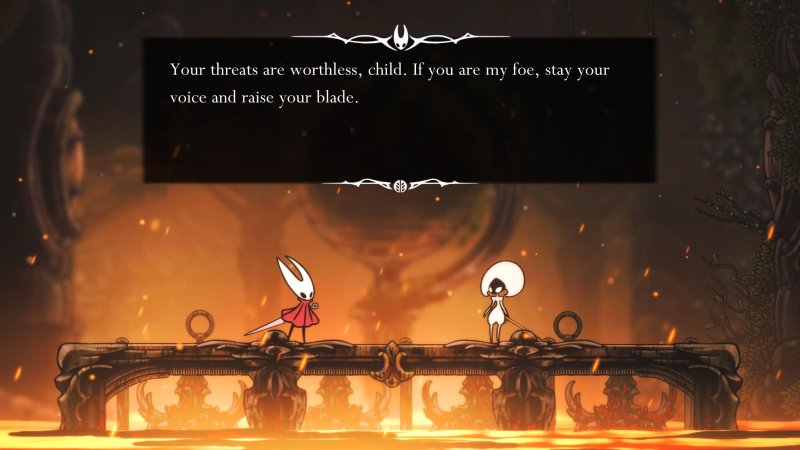 Pharloom jest szczególnie niezwykłe, kiedy zaczniemy dostrzegać detale, jakie przygotowano, aby nadać światu wiarygodności. Każda lokacja oraz każdy bohater mają swoje miejsce w opowieści i stanowią mały skrawek, wielkiej i niesamowicie rozbudowanej historii. Już w pierwszej części Hollow Knight imponował zaawansowaną budową świata oraz wielowątkowością scenariusza, który do pełnego zrozumienia wymagał lizania ścian, analizowania wszelkich notatek, wypowiedzi oraz ukrytych w głębi myśli. W Silksong jest odrobinę prościej, ponieważ Hornet nie jest niemą postacią i często wchodzi w konwersację z innymi mieszkańcami królestwa, co ułatwia zrozumienie głównych wydarzeń. Nadal jednak będziemy musieli poświęcić wiele uwagi, aby dokładnie zrozumieć, co twórcy chcieli nam przekazać.