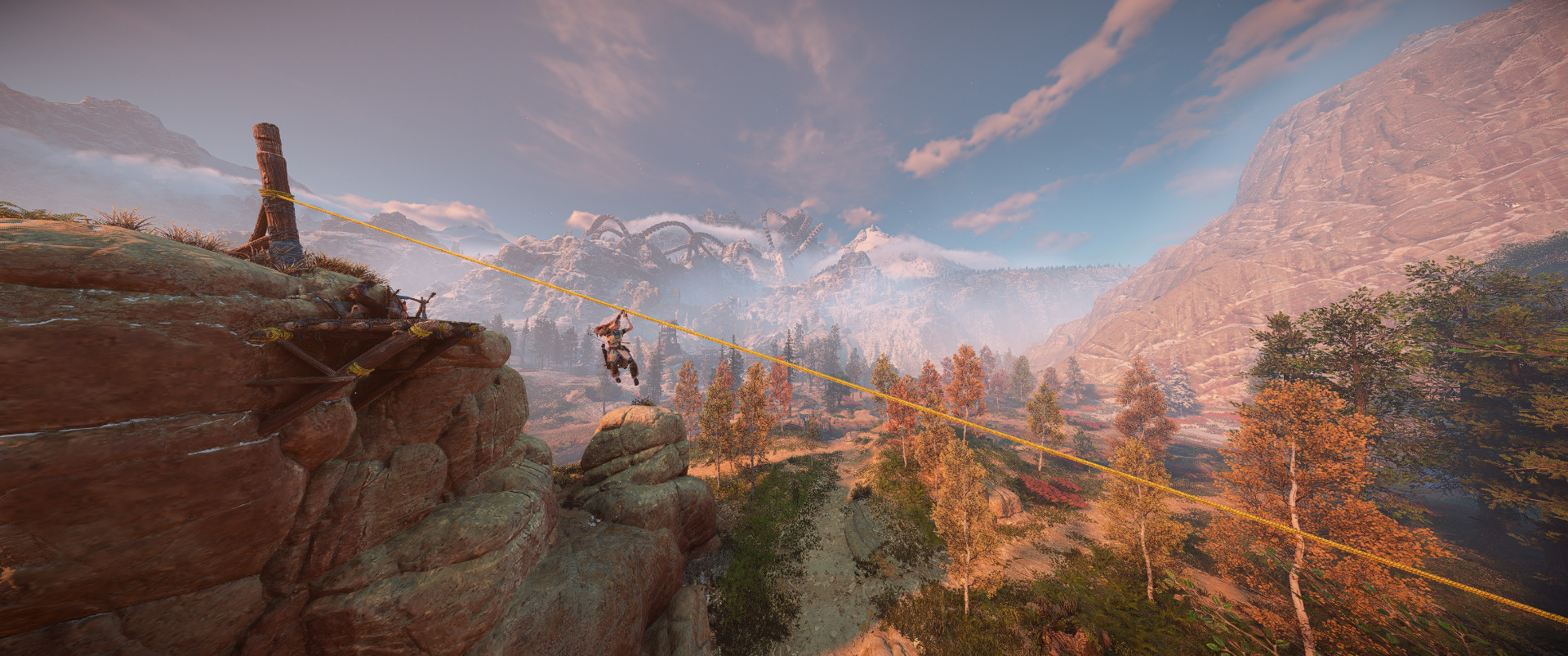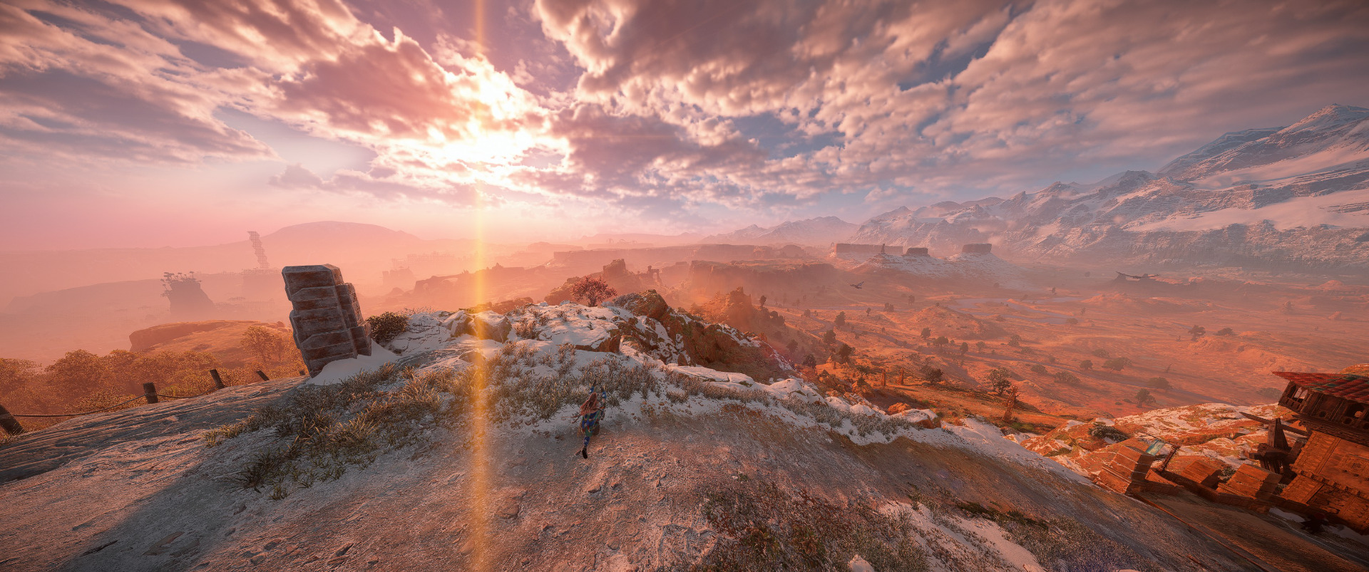 Od pierwszych zapowiedzi remastera, tym co wybijało się na pierwszy plan w prezentowanych materiałach, były ogromne różnice w oświetleniu. Horizon Zero Dawn miał dosyć chłodną paletę barw, z przewagą niebieskiego i zielonego. Teraz gra bardzo mocno upodobniła się w tej kwestii do części drugiej. Kolory są bardzo ciepłe i nasycone, mam wrażenie, jakby na obraz był nałożony lekko pomarańczowy filtr. Czy to lepiej, czy gorzej? Myślę, że to kwestia mocno indywidualna. W mojej ocenie nowe oświetlenie wygląda dobrze, ale niektóre sceny, które zapamiętałem jako dość mroczne, stały się o wiele bardziej family friendly.