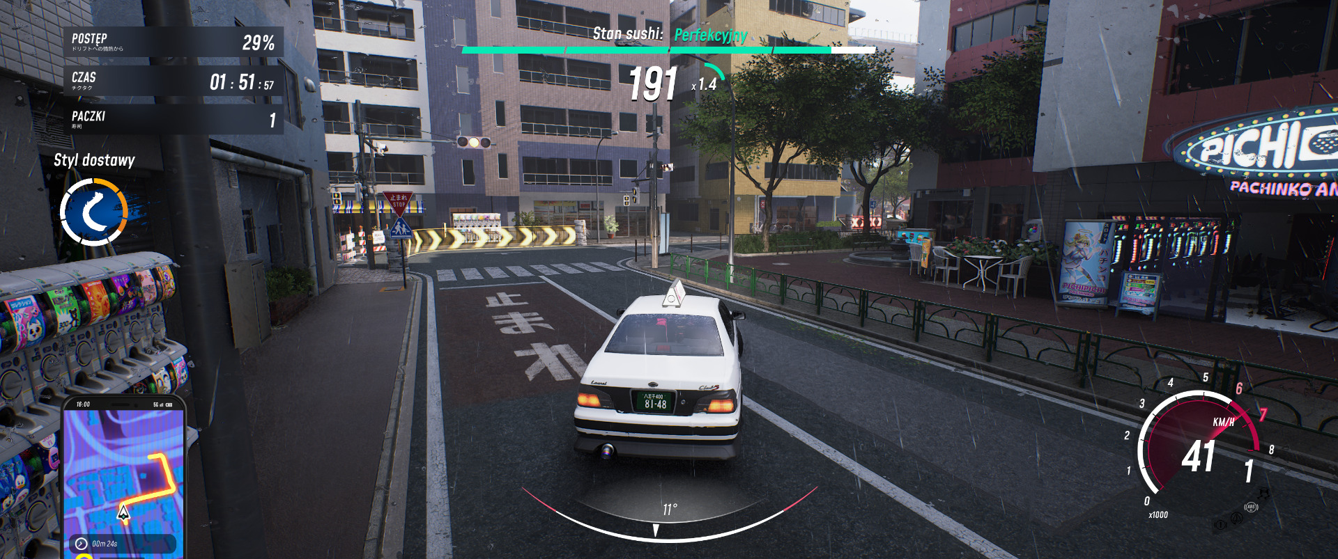 W trakcie fabuły weźmiemy udział w pokaźnej ilości zróżnicowanych wydarzeń, chociaż, oczywiście, zawsze za sterami naszego auta. Poza szeregiem wyścigów i zawodów drifterskich, czeka na nas też rozwożenie sushi (pieniądze na nową gablotę i jej tuning same się nie zarobią), ściganie podejrzanych typów czy ucieczka przed policją. Narracja prowadzona jest za pomocą ręcznie rysowanych stron mangi, które możemy przeczytać przed, a czasem też po, danej misji głównego wątku.