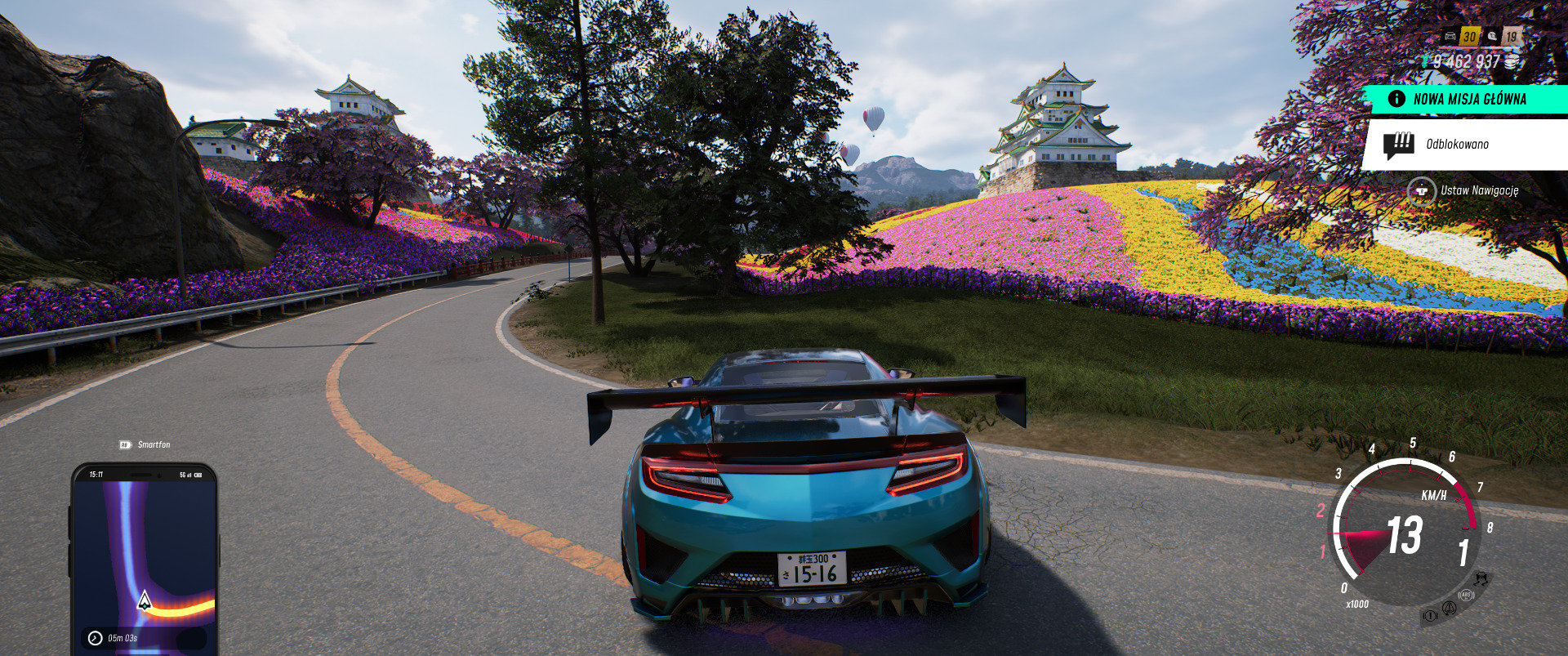 Moim największym zarzutem w kwestii świata jest to, jak niewiele zapadających w pamięć miejsc się tutaj znajduje. Tak naprawdę, jestem w stanie wymienić dwa ciekawsze krajobrazy: pola kolorowych kwiatów wokół zamków oraz górski wodospad. Poza tym, przez większość czasu jest tu niestety bardzo nijako. Owszem, wszystkie trasy są zazwyczaj ładne, ale zlewają się w jedno i dają nieprzyjemne uczucie jazdy w kółko po tym samym terenie. Te ponad 250 km dróg, jakimi chwalą się twórcy, odczuwałem bardziej jak, maksymalnie, 50 km. Odnoszę wrażenie, że zabrakło tutaj pomysłów jak bardziej odróżnić od siebie poszczególne regiony Guntamy.