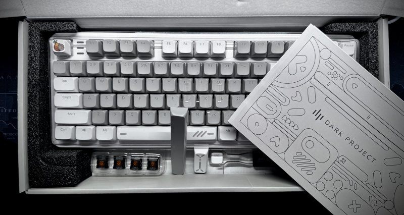 W opakowaniu poza samą klawiaturą (chronioną dedykowaną osłoną przeciwkurzową wykonaną z przeźroczystego plastiku — super detal, który powinien być standardem w tej gamie sprzętu) znajdziemy kabel USB/USB-C o długości 1,8 metra, trzy wymienne przyciski, dedykowany chwytak do ich wyciągania, zestaw wymiennych gumek pod klawiaturę oraz cztery dodatkowe switche na wymianę.