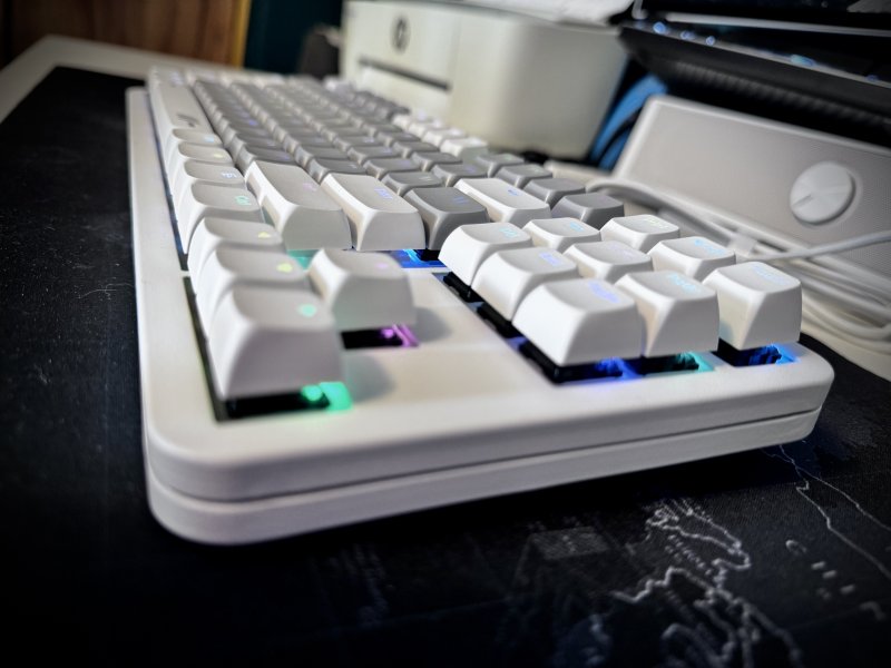 Pod względem oświetleniowym, klawiatura bije na głowę wszystko, z czym dotychczas miałem do czynienia. Dawno nie widziałem tak wielu opcji oświetlających, które mogą cieszyć oko do tego stopnia, klawiatura może z powodzeniem służyć za indywidualną dekorację świetlną. Do dyspozycji oddano ponad dziesięć odmiennych opcji iluminacji. Moim osobistym faworytem jest efekt przypominający krople spadające na klawisze. Z innych opcji warto wymienić efekt delikatnego pulsowania każdego z klawiszy, bez ustalonego porządku, czy chwilowe oświetlenie tylko tych przycisków, które zostały użyte.