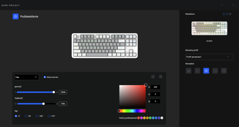 A skoro już o oprogramowaniu wspomniałem — to zostało ono wykonane w formie webowej i jest dostępne w każdej chwili na stronie internetowej producenta pod adresem software.darkproject.eu . Początkowo spodziewałem się, że w takim razie będzie mocno okrojone, tak jak wiele aplikacji internetowych, ale tutaj czekało mnie przyjemne zaskoczenie.