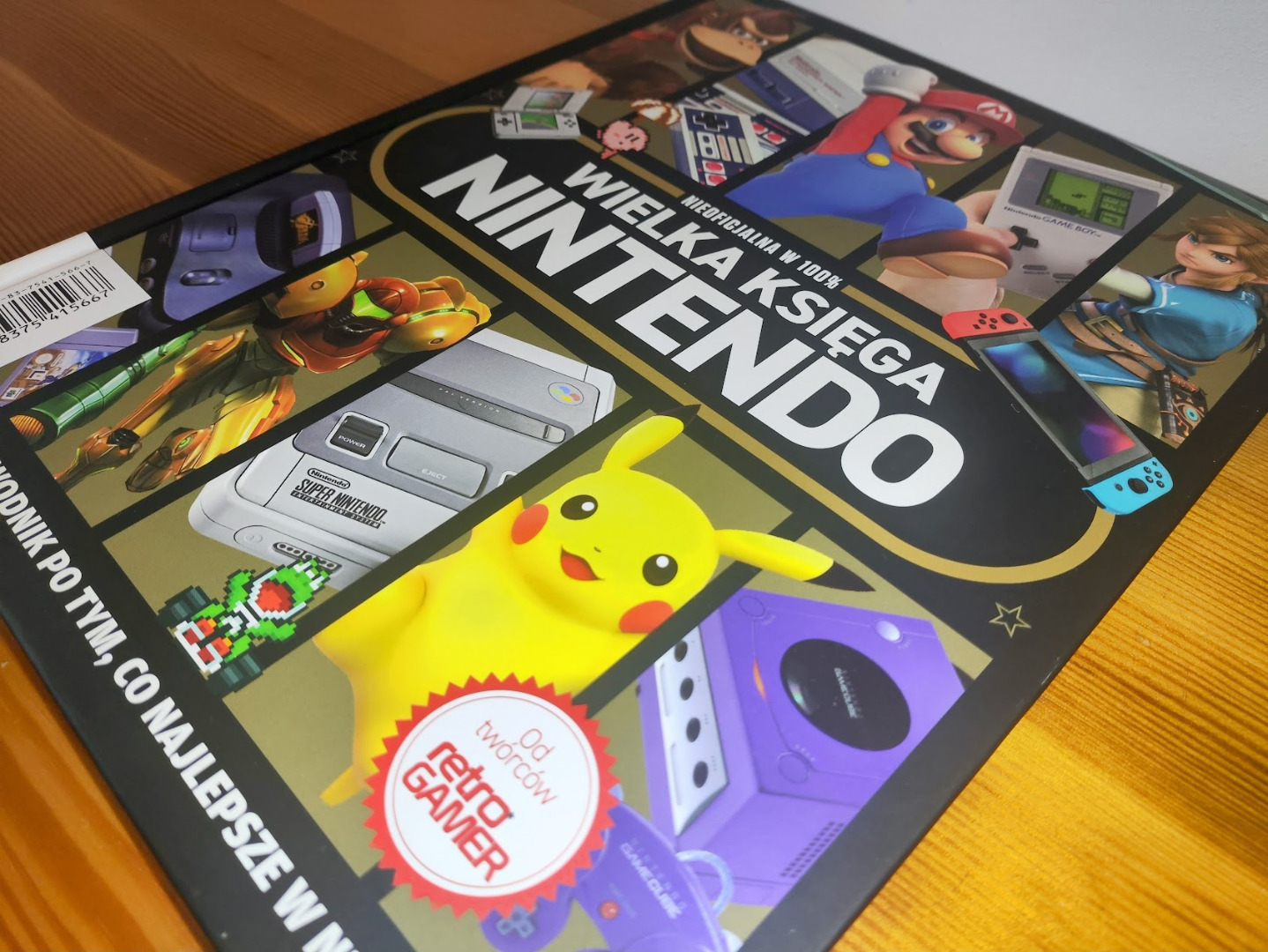 Pierwsze wrażenie jest piorunujące. WOW — jakie to jest wielkie! Twarda oprawa, format A4 i bardzo ładne nadruki z tłoczonymi elementami. Jeżeli lubicie kolekcjonować growe gadżety (o ile książkę można zaliczyć do gadżetów) i trzymać je na półce, to „Wielka Księga Nintendo” będzie się świetnie prezentować. Chociaż jej wymiary nie wpasują się do każdej biblioteczki, może stanowić fajne tło dla wystawki z figurkami amiibo czy innymi funko popami.